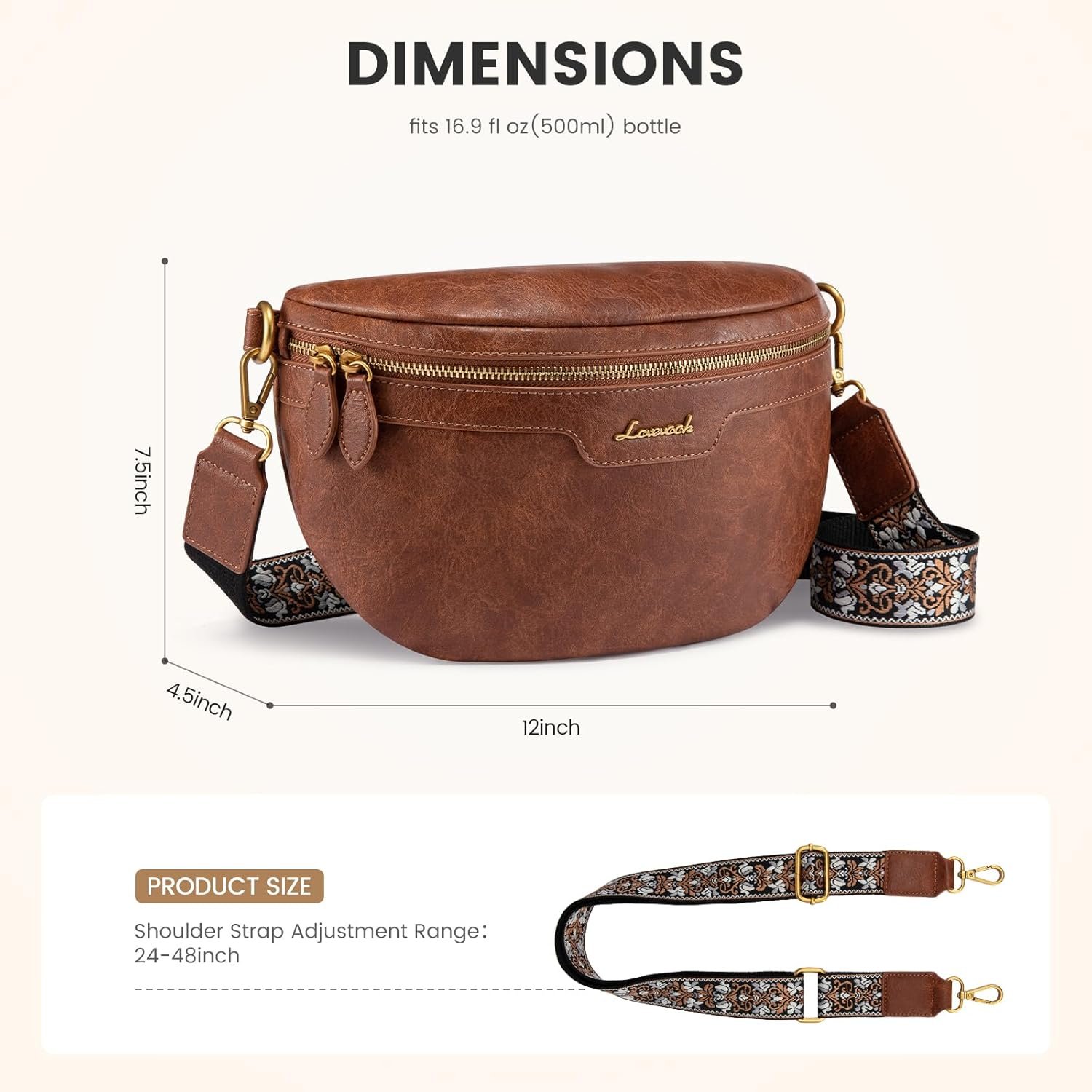 AN EXCELLENT GIFT WITH RELIABLE SERVICE: Ideal for holidays and anniversaries, this crossbody belt bag is a thoughtful gift for mothers, daughters, friends, and yourself. LOVEVOOK offers a 30-day no-questions-asked return policy and a one-year warranty for a worry-free purchase. Please check dimensions before ordering to ensure it meets your needs