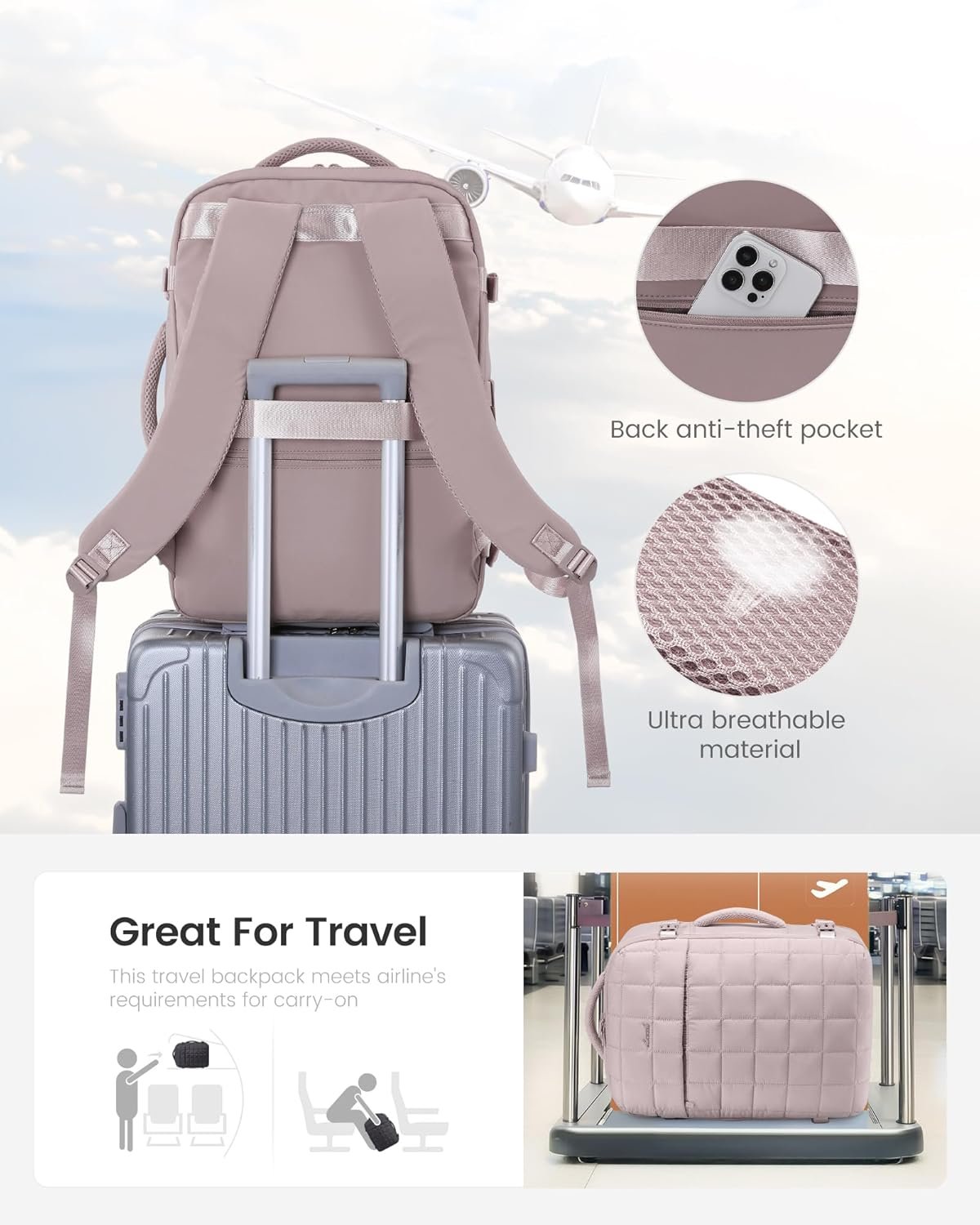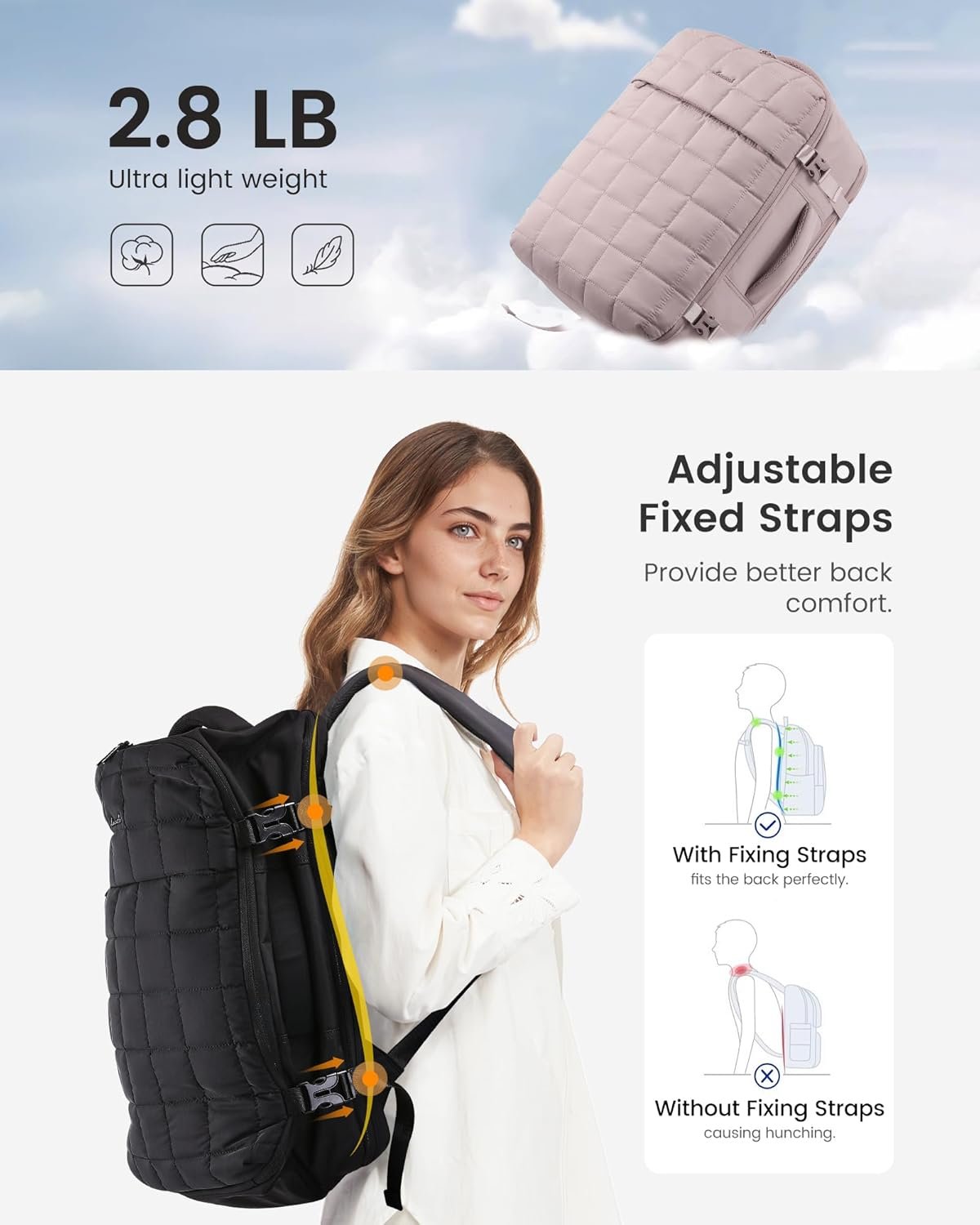 【Lightweight & Breathable】The stylish puffy weekender travel backpacks for women are made of padded cotton fabric, featuring waterproof, lightweight, comfortable, and soft. The shoulder straps are made of breathable mesh material, which can reduce shoulder pressure and travel burden. The overall style is simple and practical