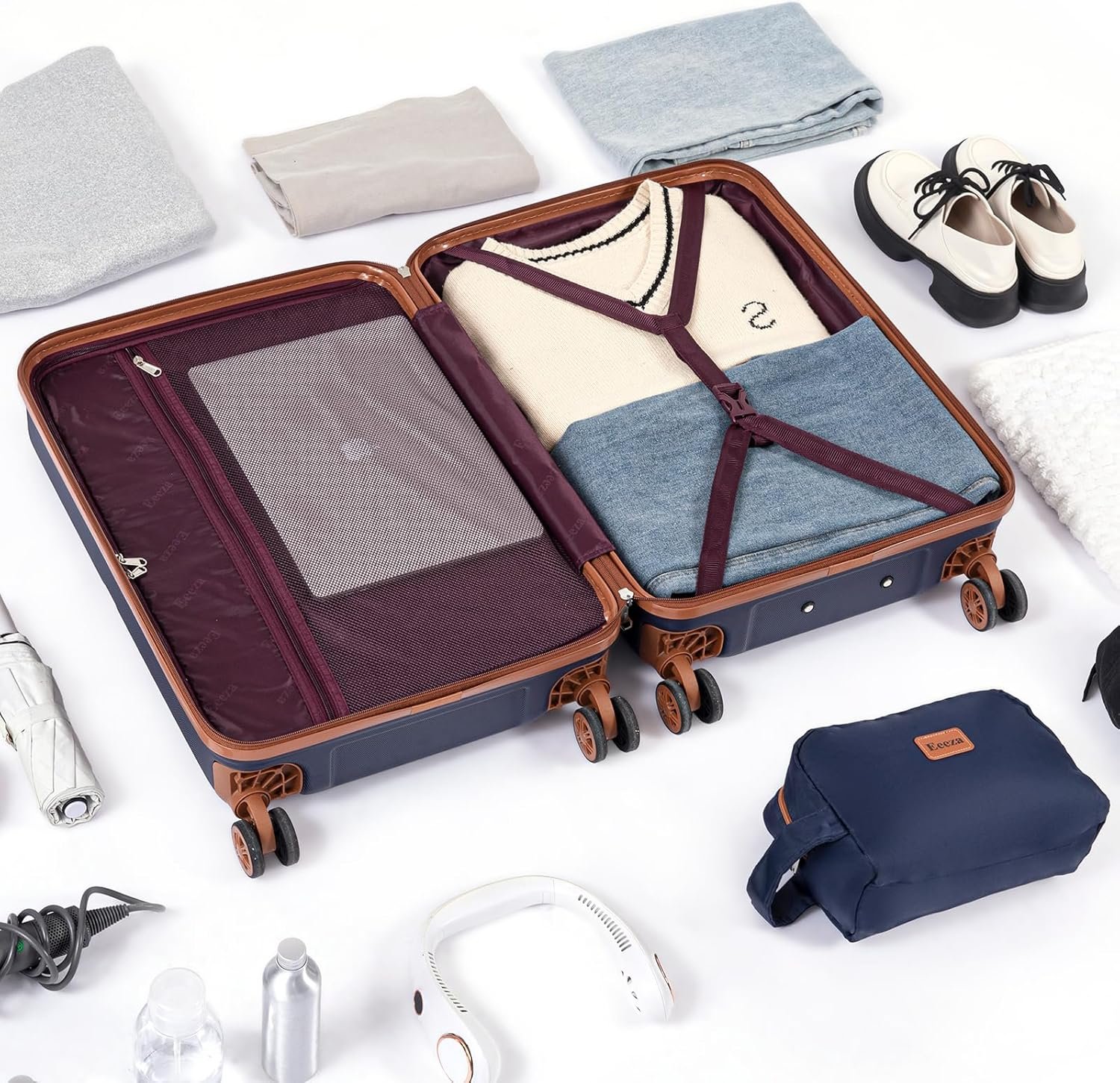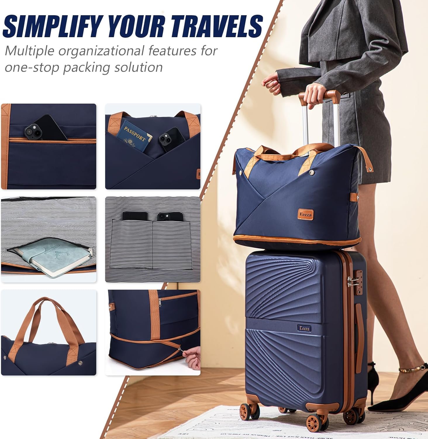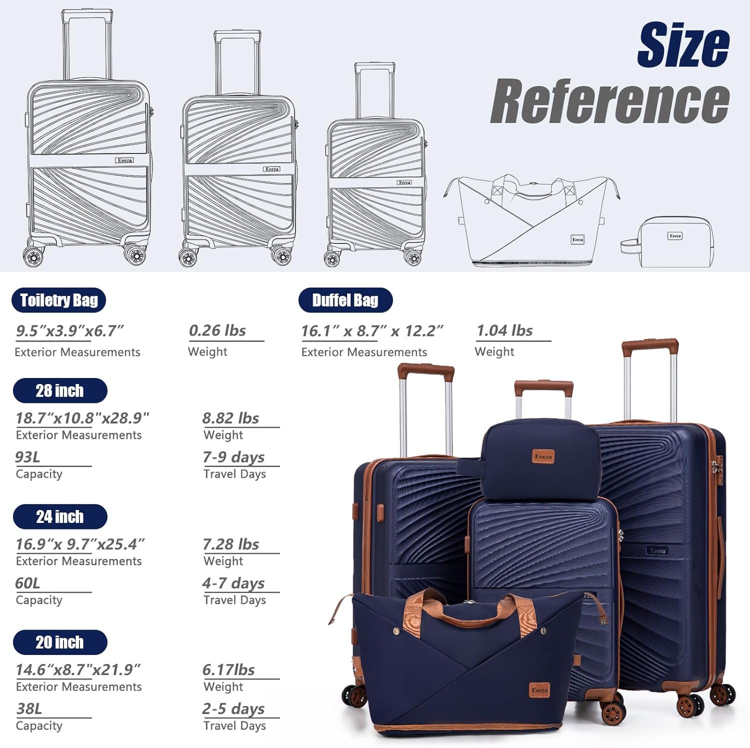 【5 Piece Luggage Set】Luggage sets include a 28-inch large suitcase, 24-inch medium checked luggage, 20-inch carry on luggage, extended duffel bag, and a toiletry bag. The duffel bag features a back sleeve so you can conveniently attach it to the retractable luggage handle.
