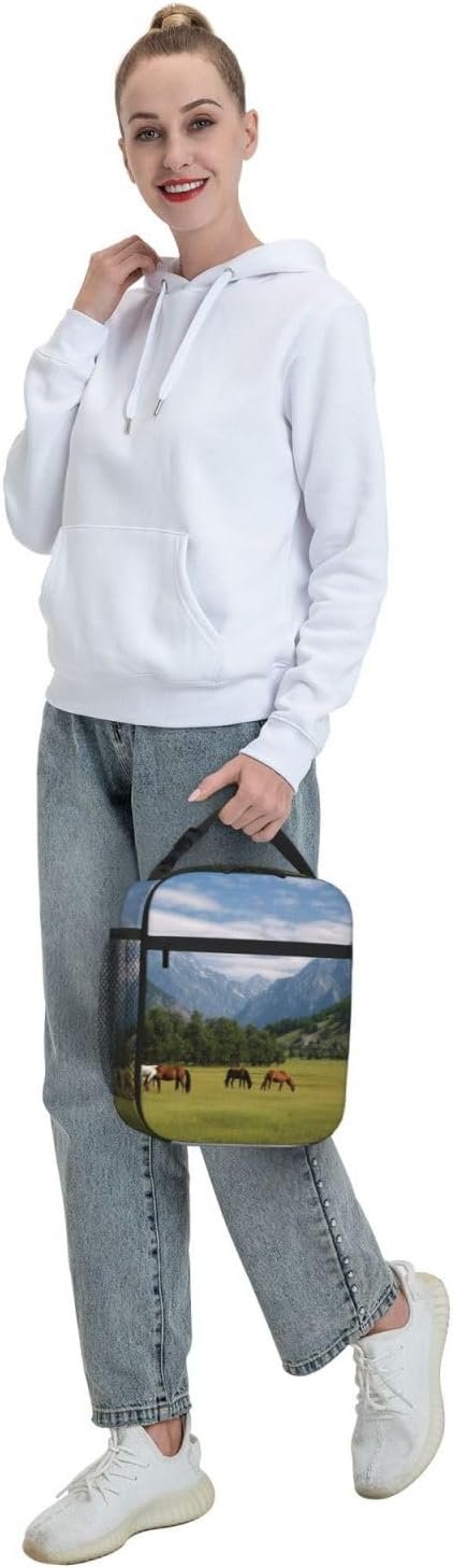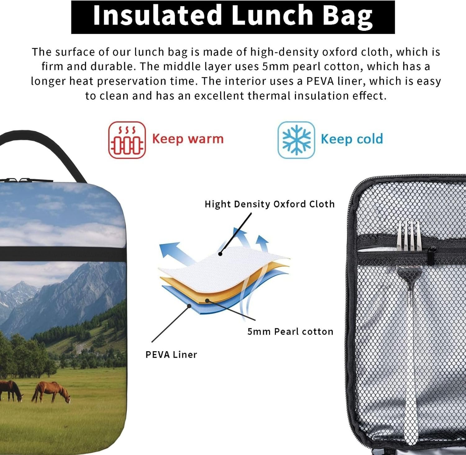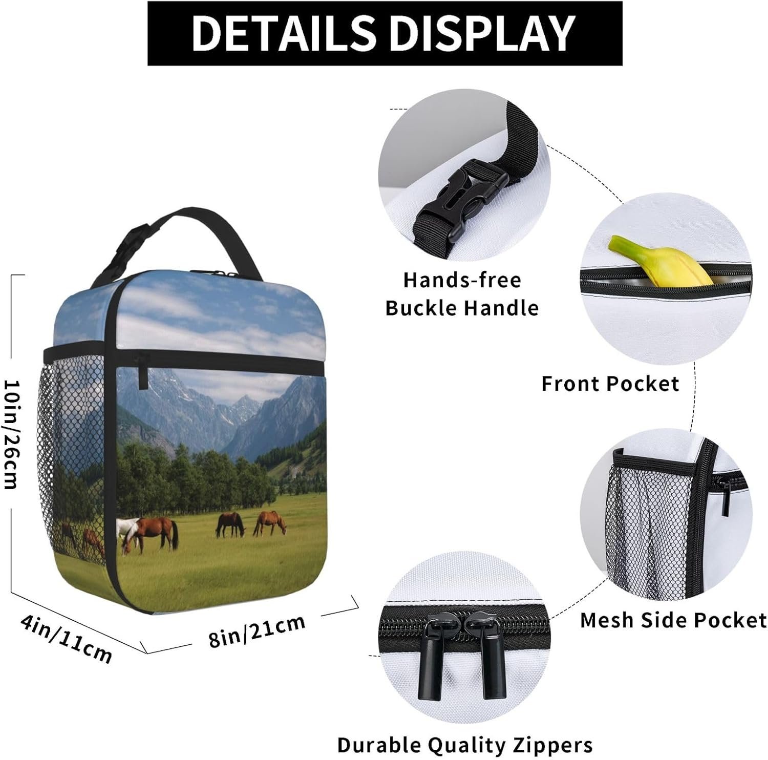 Top Materials: Insulated Mountain Pasture Horses lunch bag features a premium thickened aluminum foil interior that blocks moisture, prevents leaks, and maintains ideal food temperature for hours. Work lunch bag use heat-retention design keeps meals warm while preventing condensation.