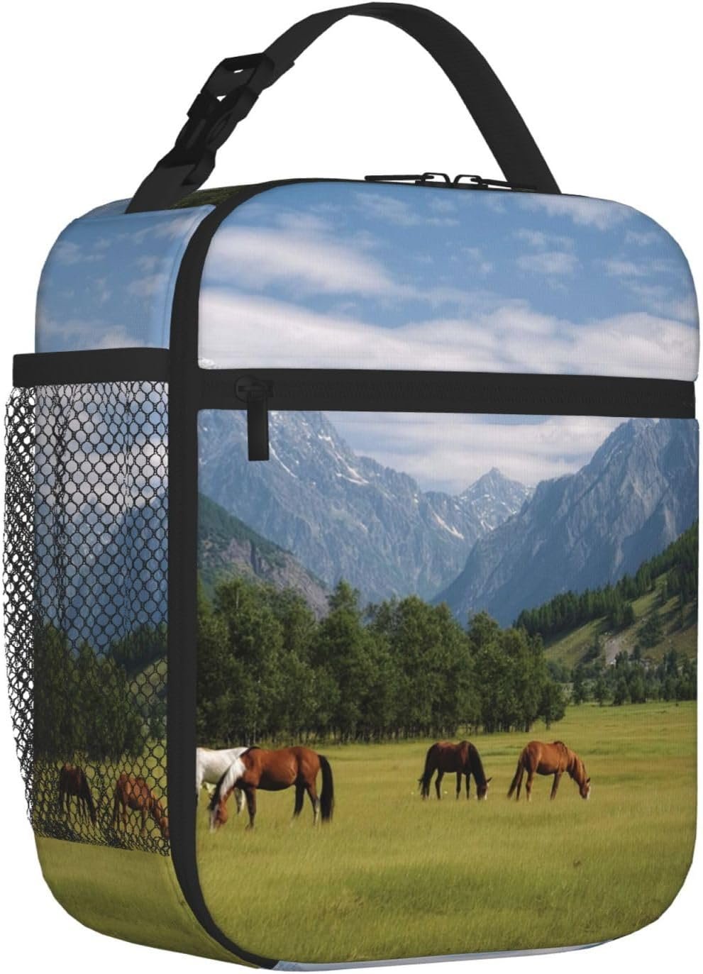 Lunch bag Mountain Pasture Horses Lunch Box Leakproof Lunch Tote Bag Insulated Cooler Bags for Picnic Travel