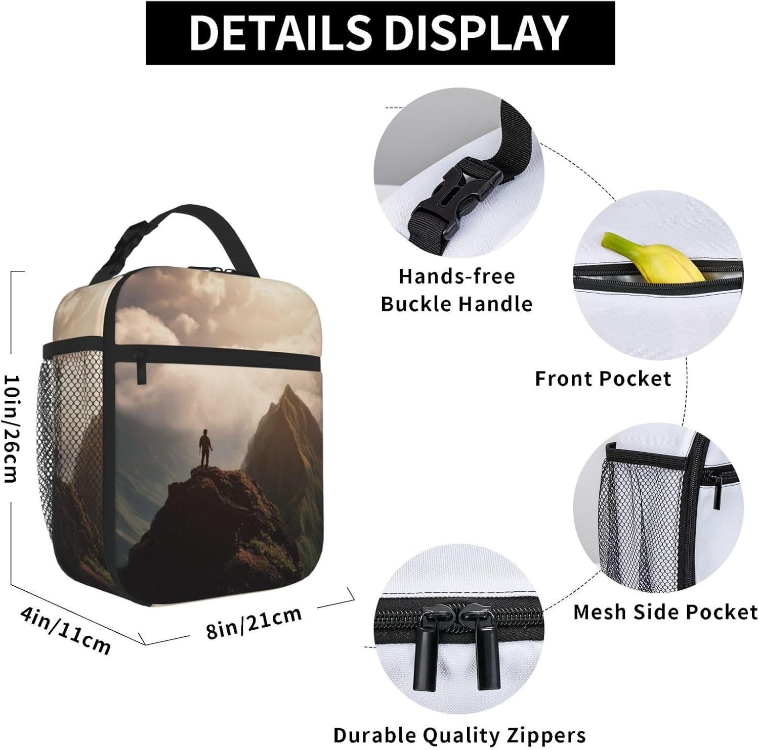 Top Materials: Insulated Woman on a Top Mountain lunch bag features a premium thickened aluminum foil interior that blocks moisture, prevents leaks, and maintains ideal food temperature for hours. Work lunch bag use heat-retention design keeps meals warm while preventing condensation.