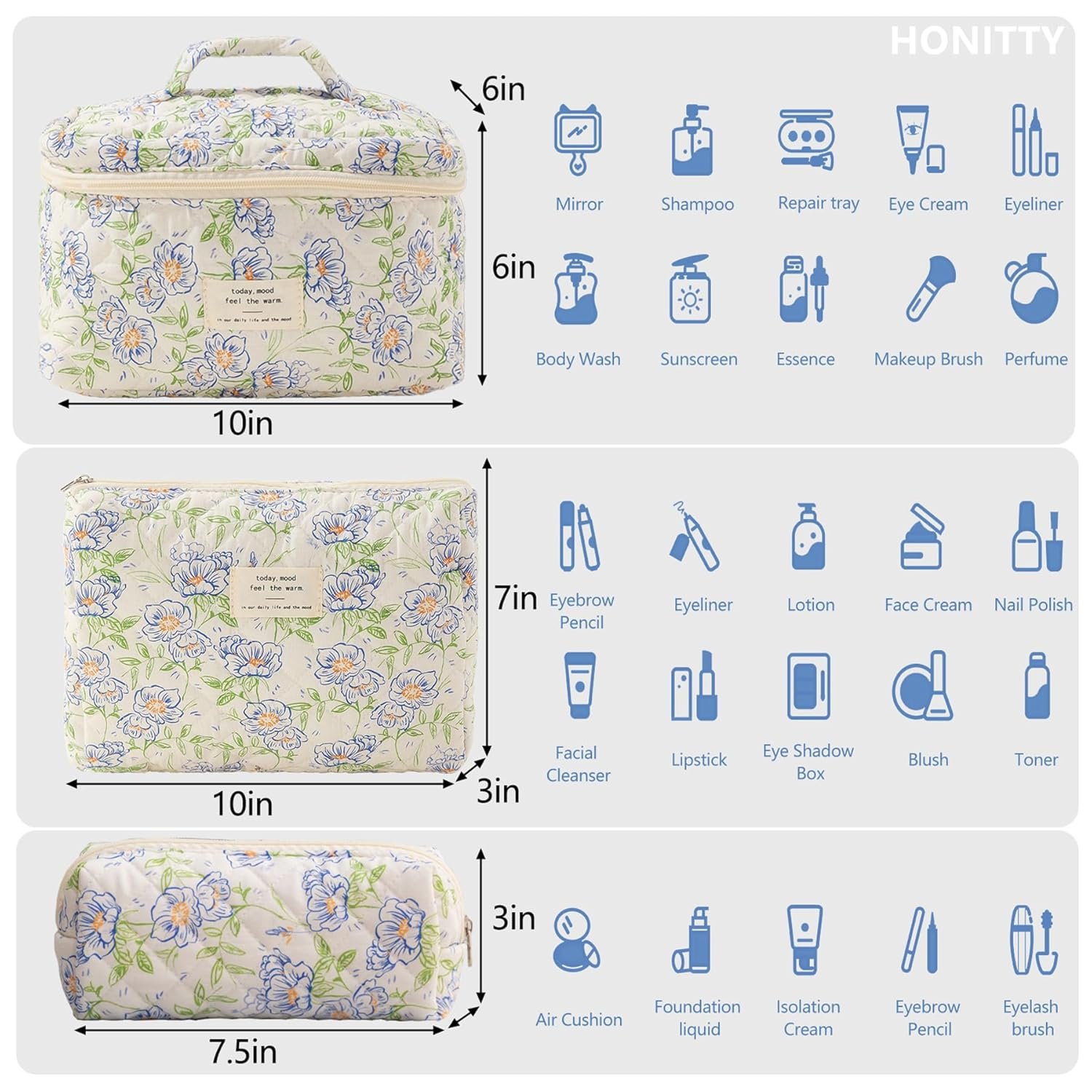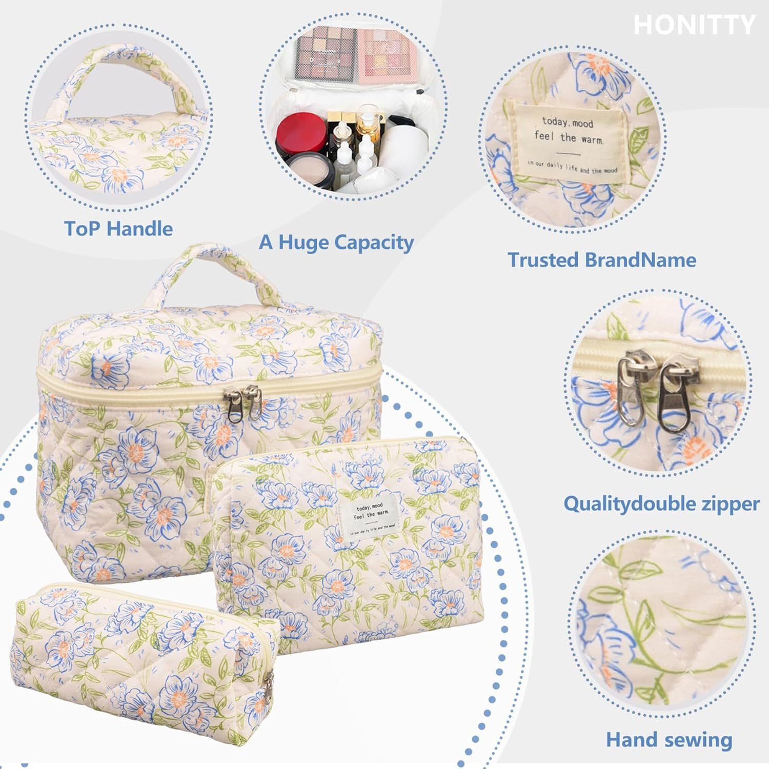 Makeup Bag,Quilted Cosmetic Bags,Large Floral Make Up Organize bag,Makeup Bag Set for Women,Flower Travel Toiletry Bag