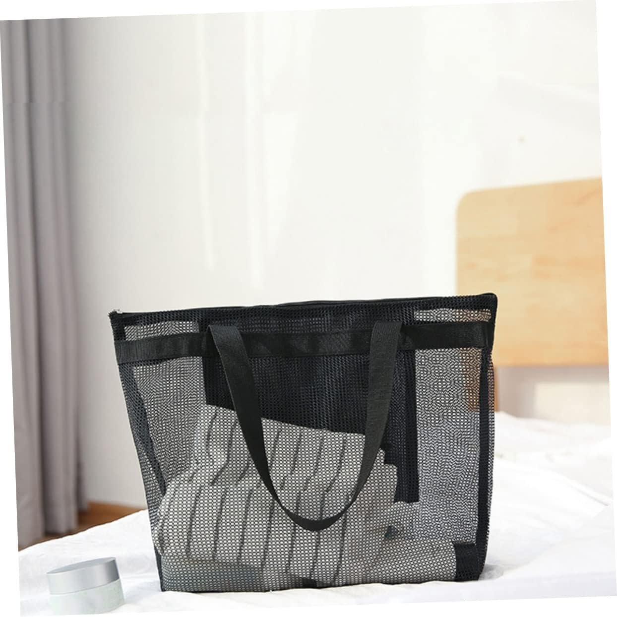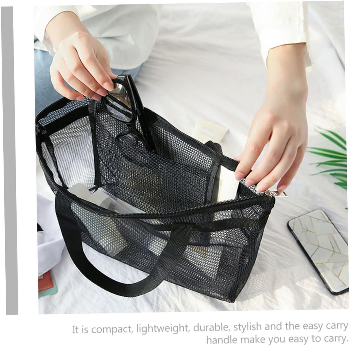 Mesh Travel Toiletry Bag with Hanging Hook Lightweight Portable Shower Organizer for Bath Sauna Spa Gym and Beach Use Polyester Cosmetic Wash Bag Black