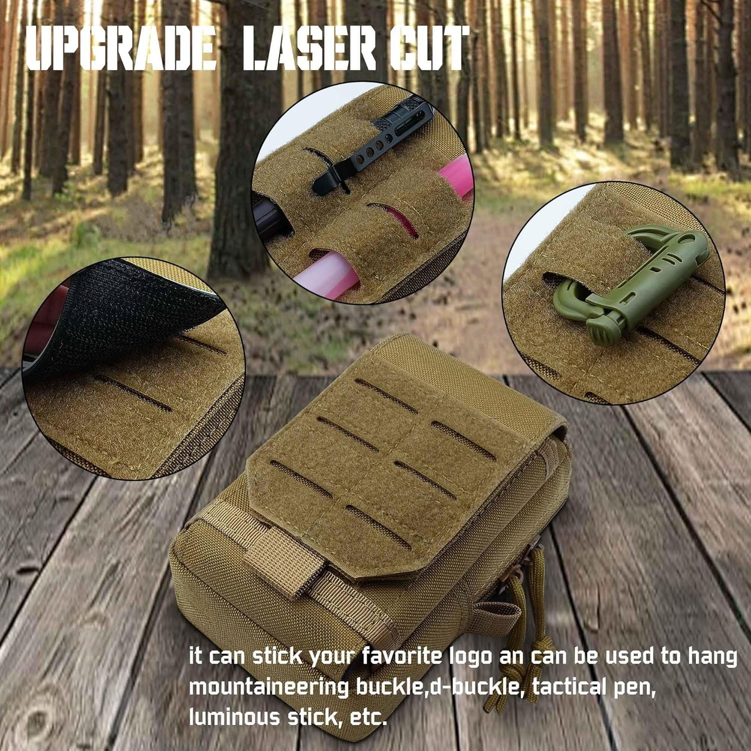 Upgrade Laser Cut Design: Our molle phone pouch with laser cutting front , that you can stick your favourite lable . Or hang small items, such as watch, compass, small pouch, etc.