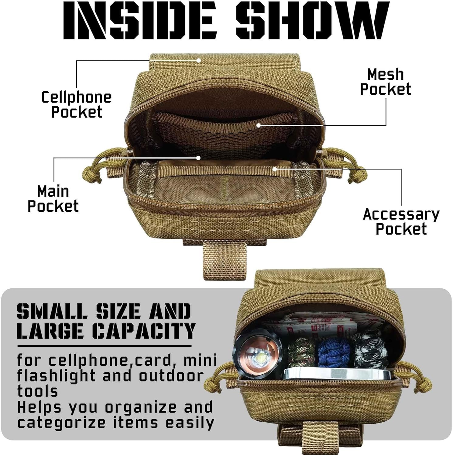 Plenty of Pockets for Better Organization: Our molle pouches size: 6.7x4x2.4 inch, multiple pockets and compartments, which can be classified to store important items. Small size, easy to carry. Not only for your mobile phones, but also for all kinds of personal belongings, such as mobile phones, wallets, power bank, sunglasses, etc.