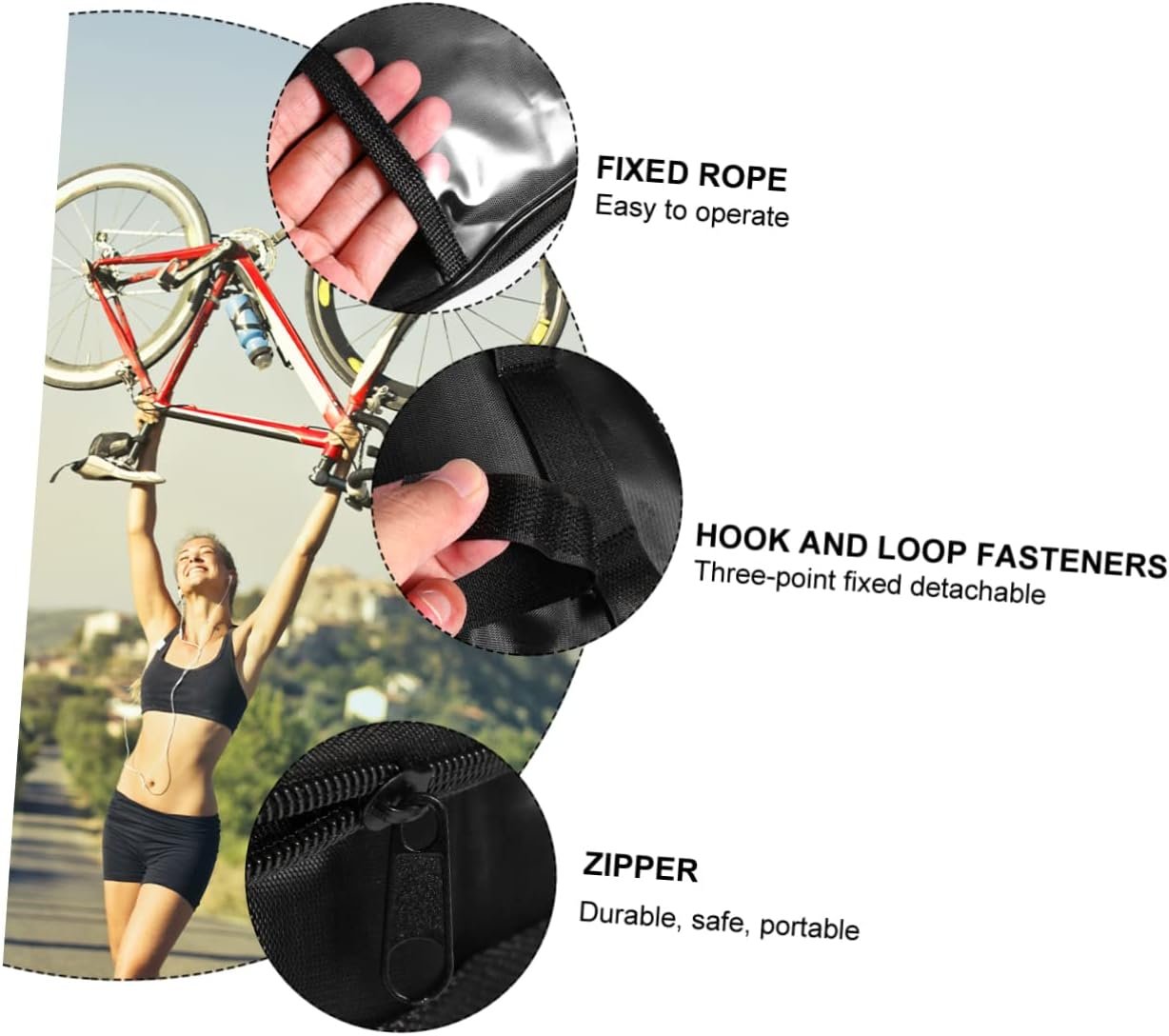 – With zipper design, you can easily open and close the bag. Also it is easy to install it on your bike bike front bag.