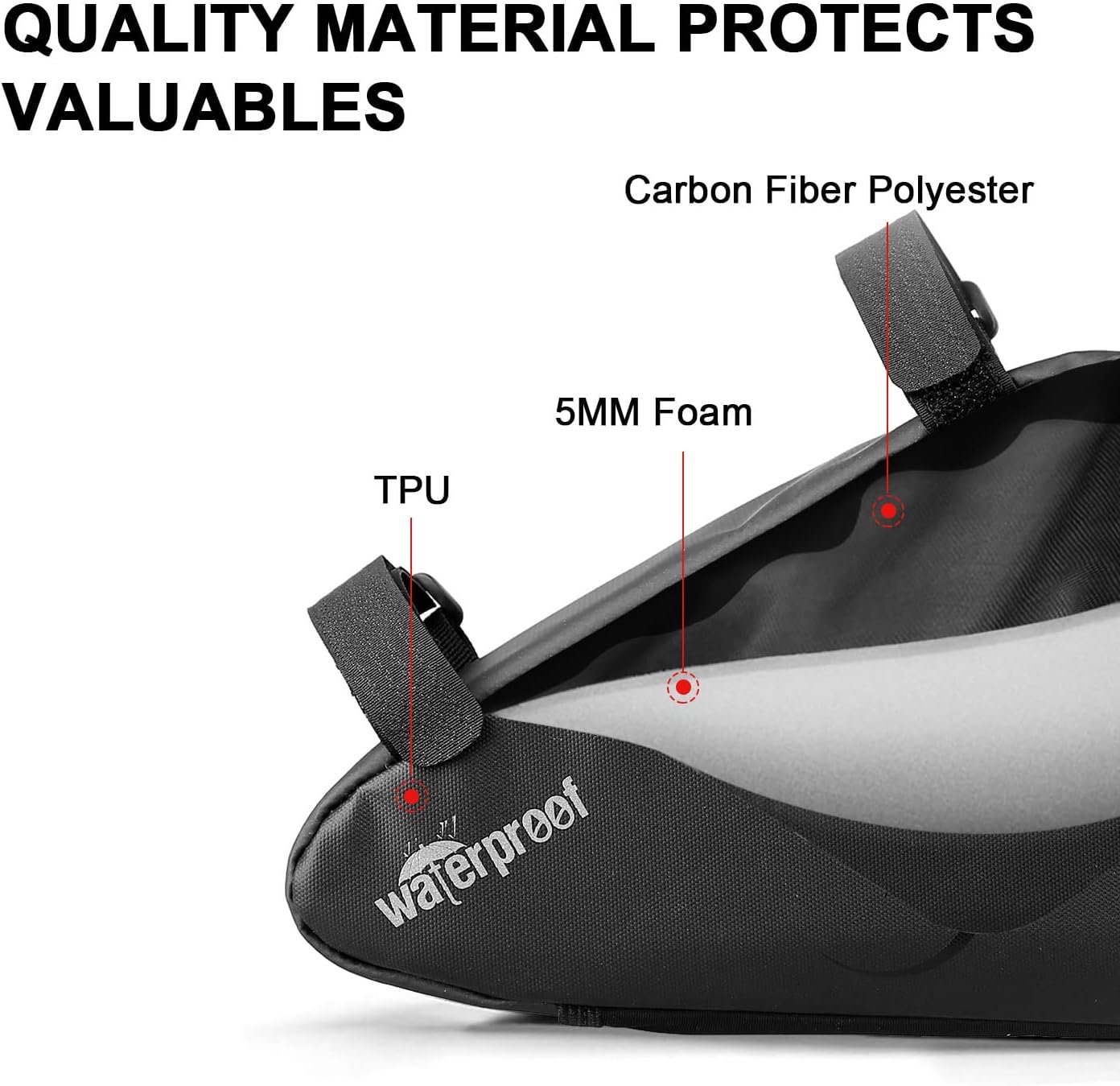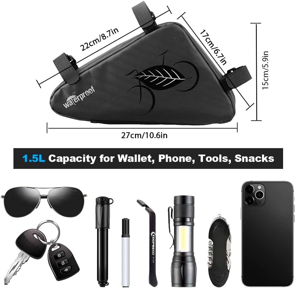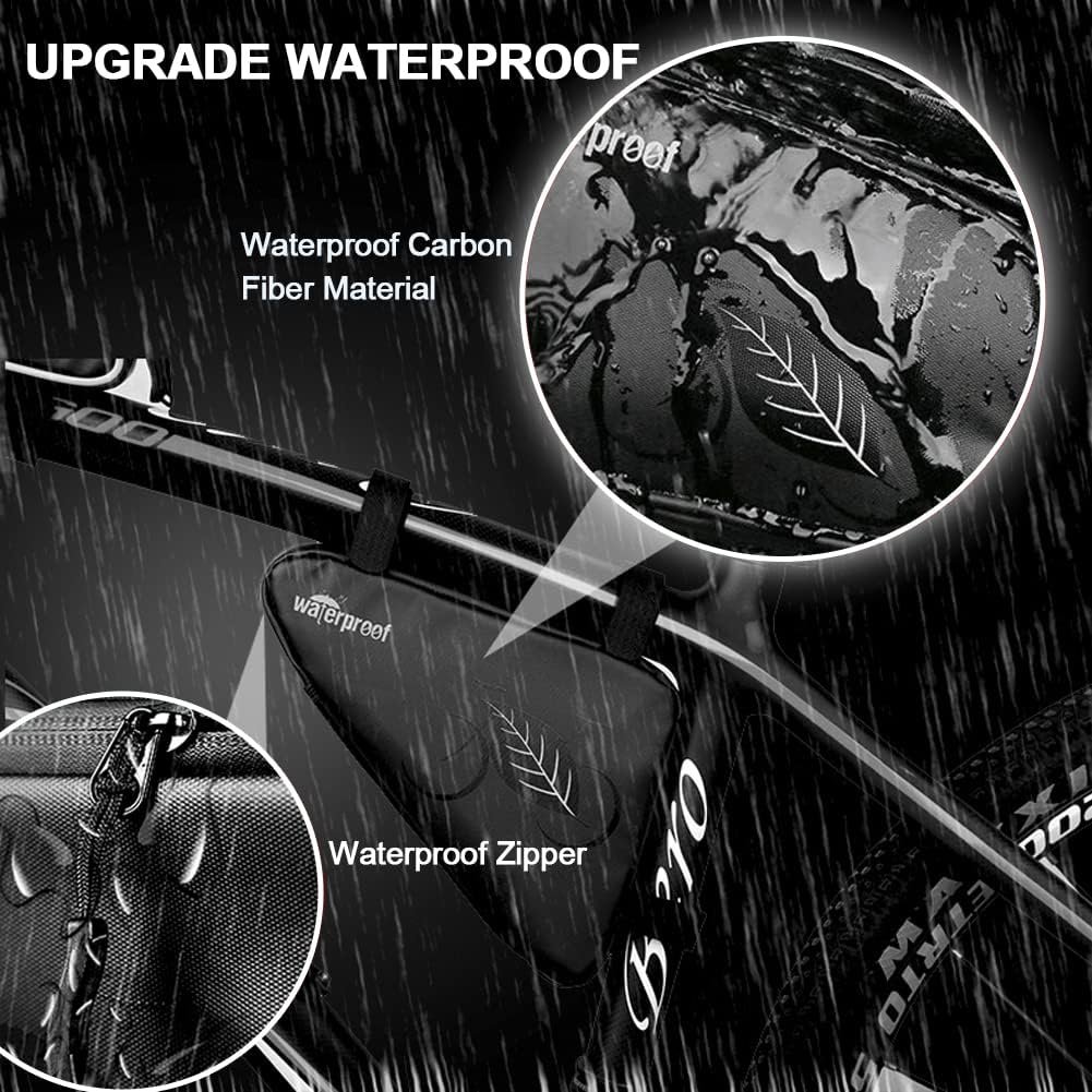 UPGRADE WATER-RESISTANT DESIGN – Full Water-Resistant Fabric, bike frame bags are made of ultralight and stylish carbon fiber material and the zippers adopt high frequency seamless welding technology, effectively block rainwater from entering the bike bag quickly. that’s the secret of our water resistant bicycle frame bags.