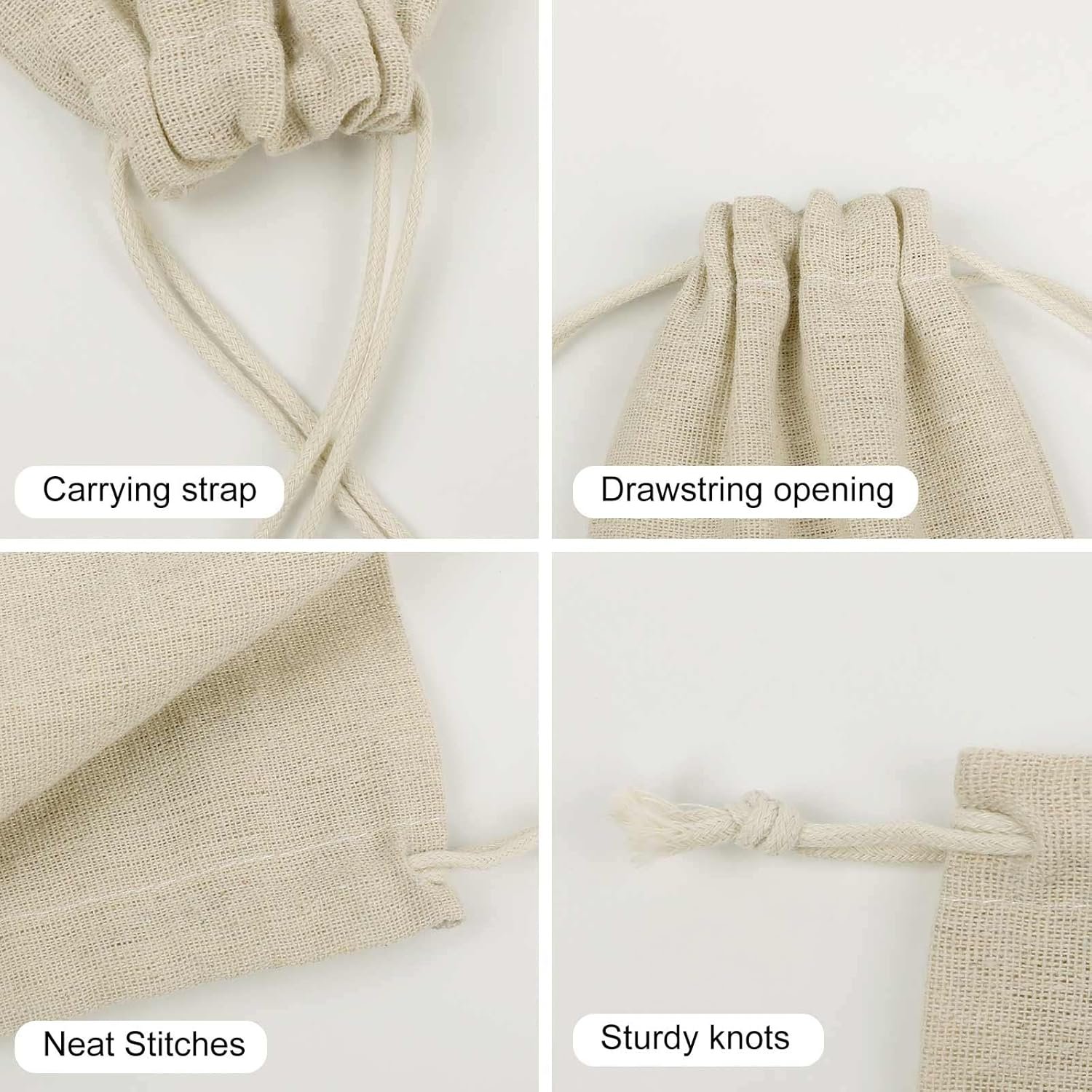 3.Uses: Mountain Lions Cotton Muslin Bags Have a Wide Range of Applications. They Are Commonly Used for Wedding Favors, Jewelry, Coins, Candies, Gifts, Rice, Cosmetics, Personal Items, Travel Items, Fruits, Vegetables.