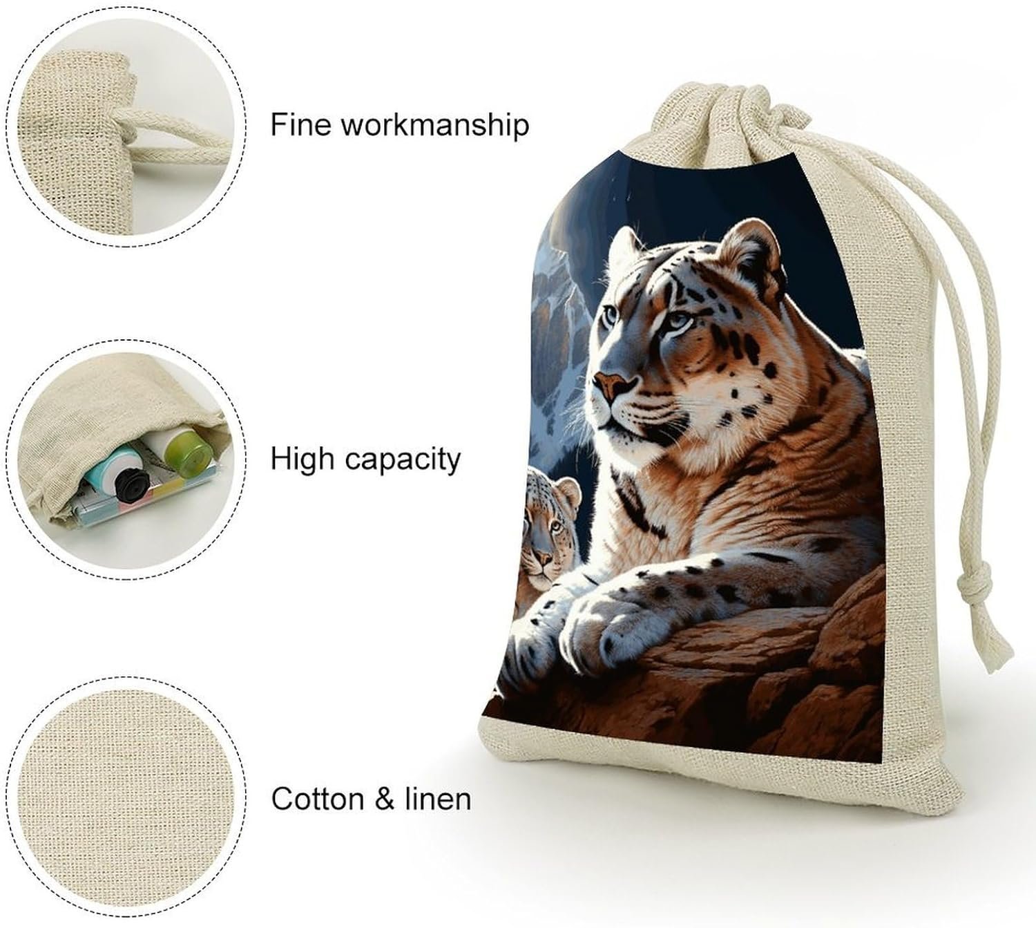 Quality Material: Each Mountain Lions Drawstring Gift Bags Is Made from Cotton Fabric for a Soft, Comfortable Feel. The Tight Stitching and Exquisite Craftsmanship Ensure the Patterns Remain Vibrant and Do Not Fade or Fall off Easily