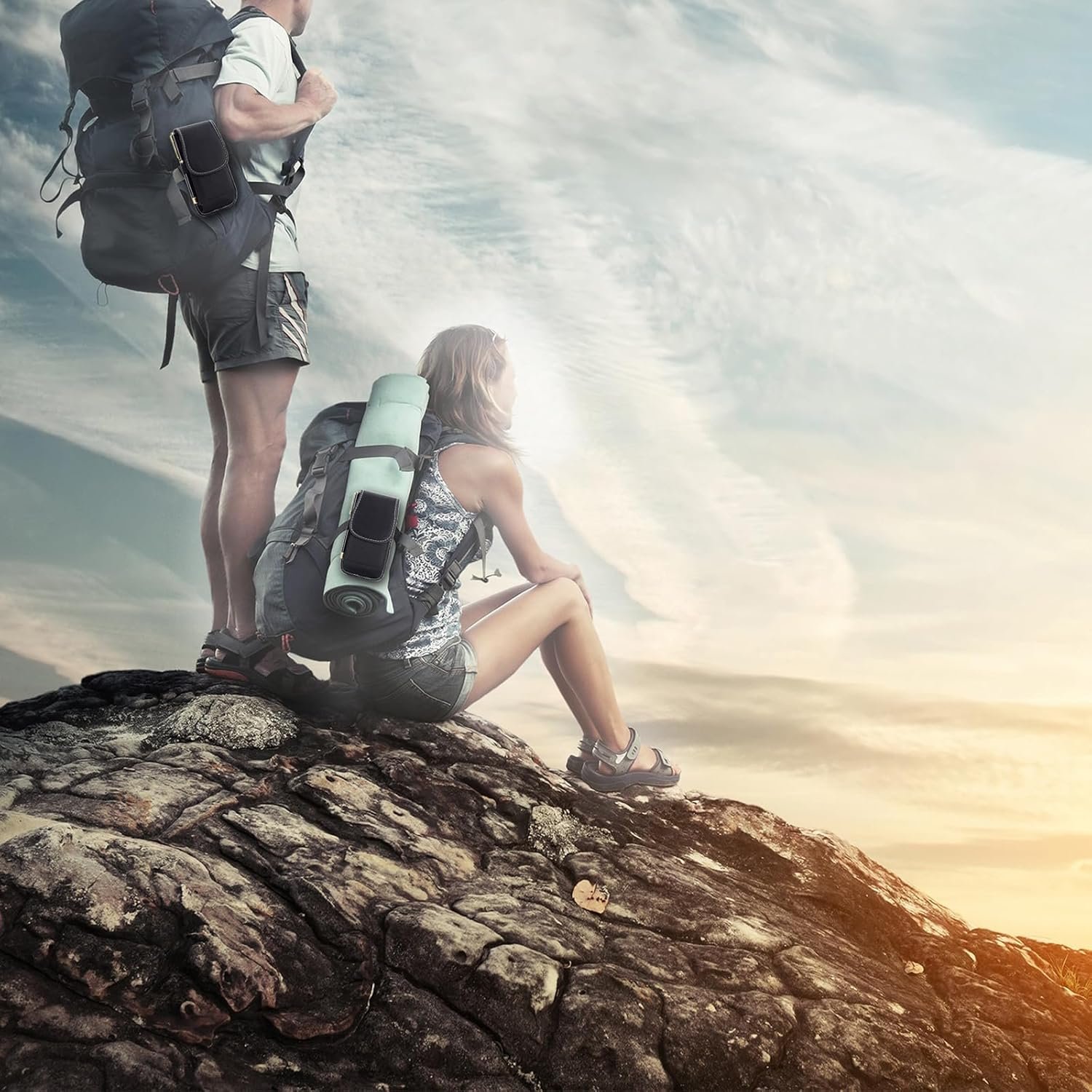 1 metal belt clip + 1 carabiner clip, you can run your belt through the loops on vertical position or horizontal position as you like, clip on your belt, and hook it on your pant, backpack and golf bag, keep the phone on your side and free your hands, especially when you don’t has pocket or big enough pocket to store the phone.