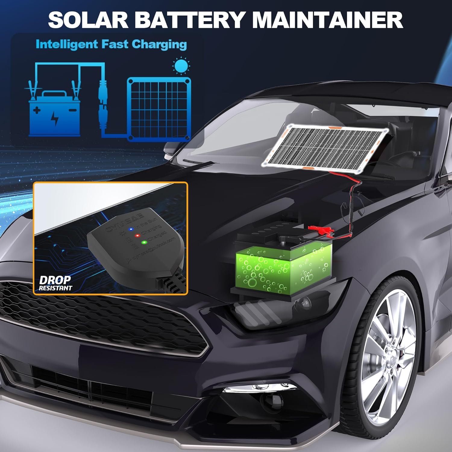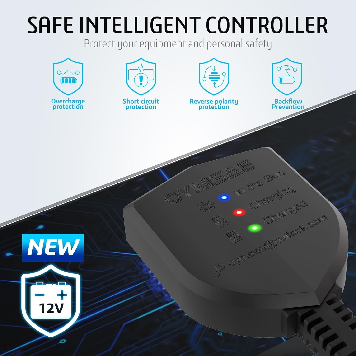 Intelligent Protection:The solar panel has a built-in microprocessor. It provides multiple protections. It prevents reverse charging, and it is safely used for charging and maintaining 12V batteries