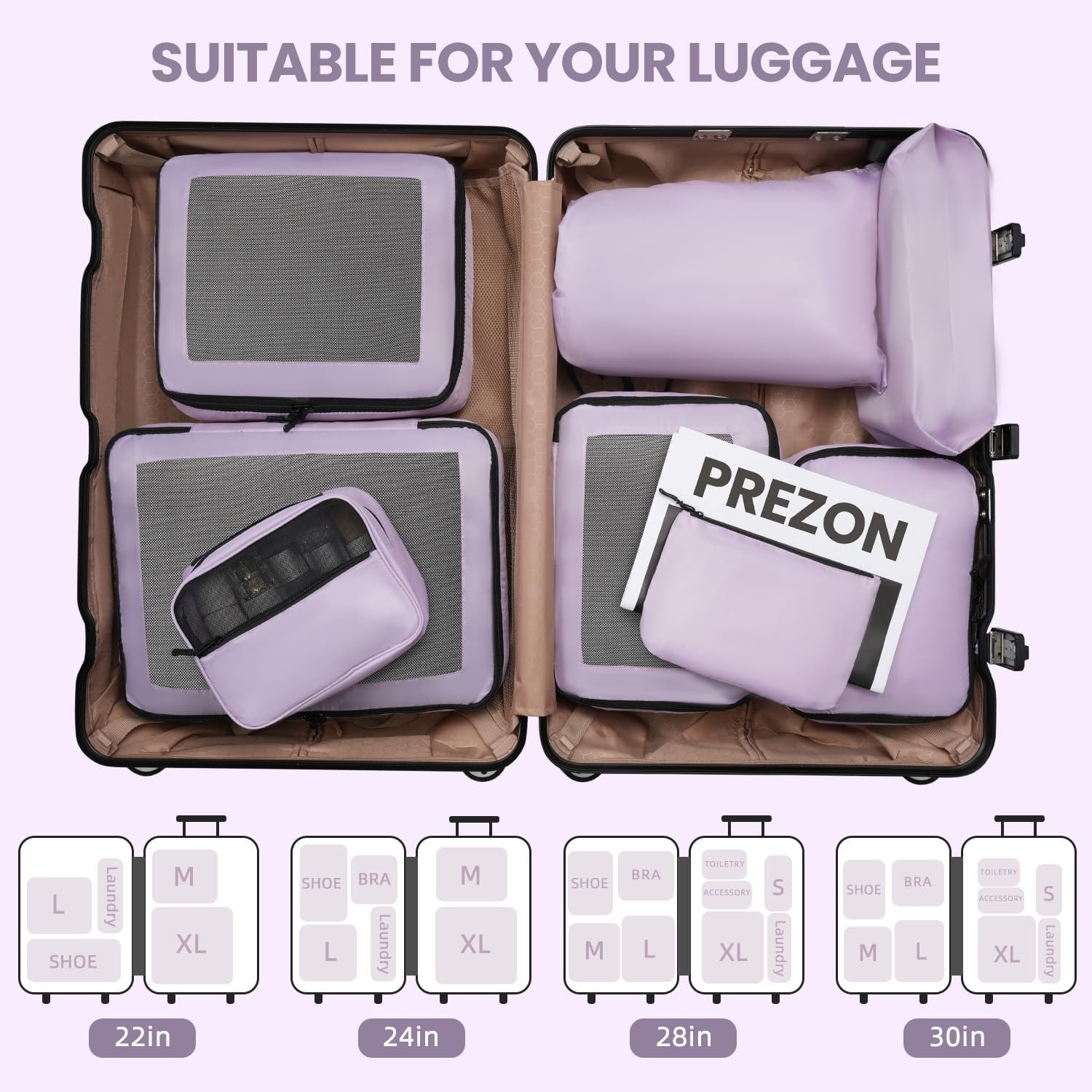 Packing Cubes for Travel | 8 Set Purple |Durable Luggage Organizer 4 Size(Extra Large, Large, Medium, Small),Comprehensive Cubes for Toiletry,Underwear, Shoe,Travel Essentials,Efficient Women Gifts