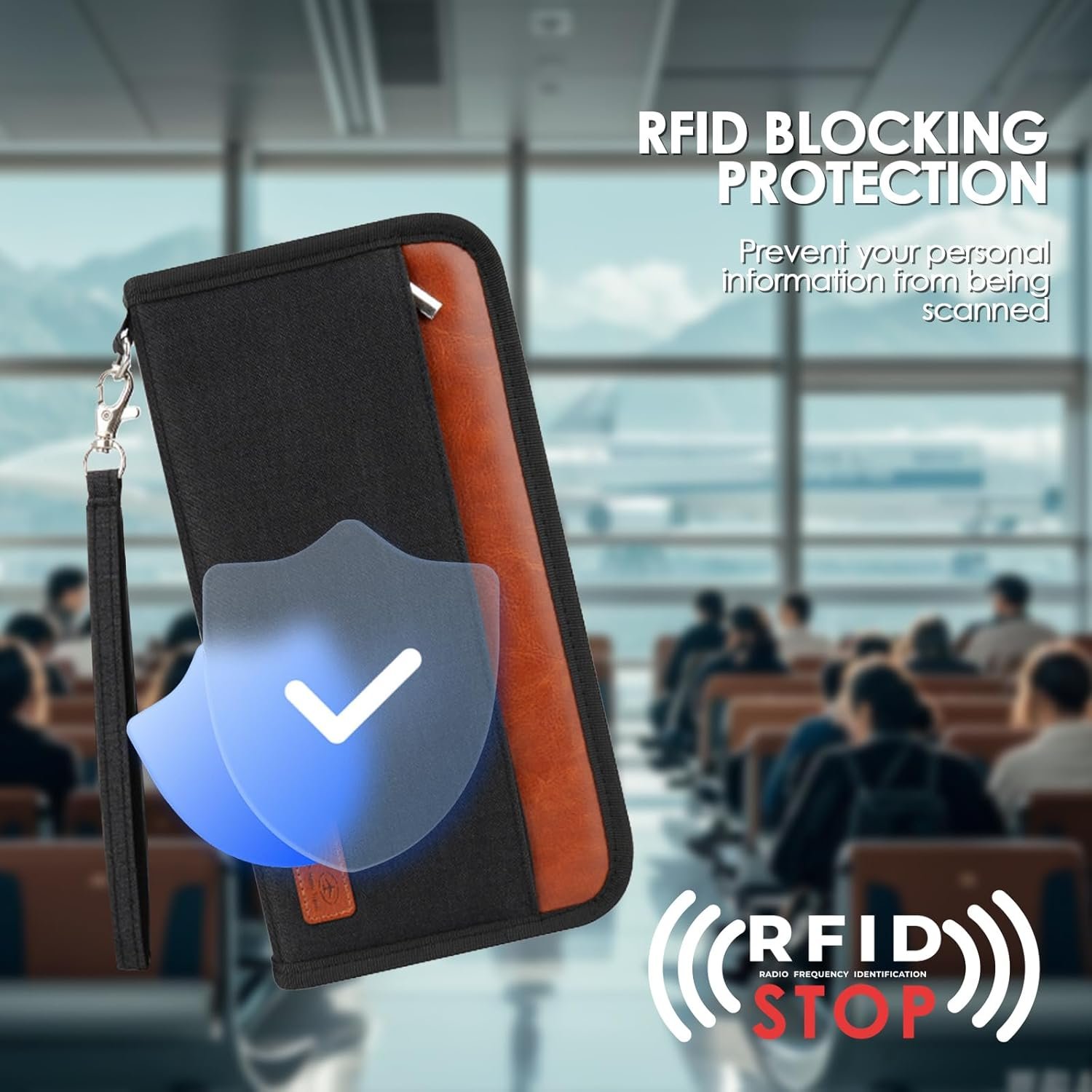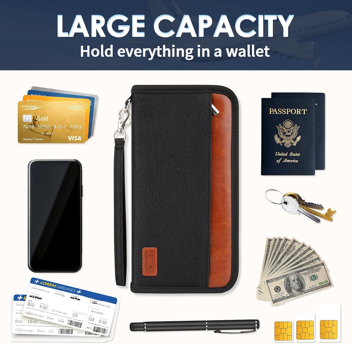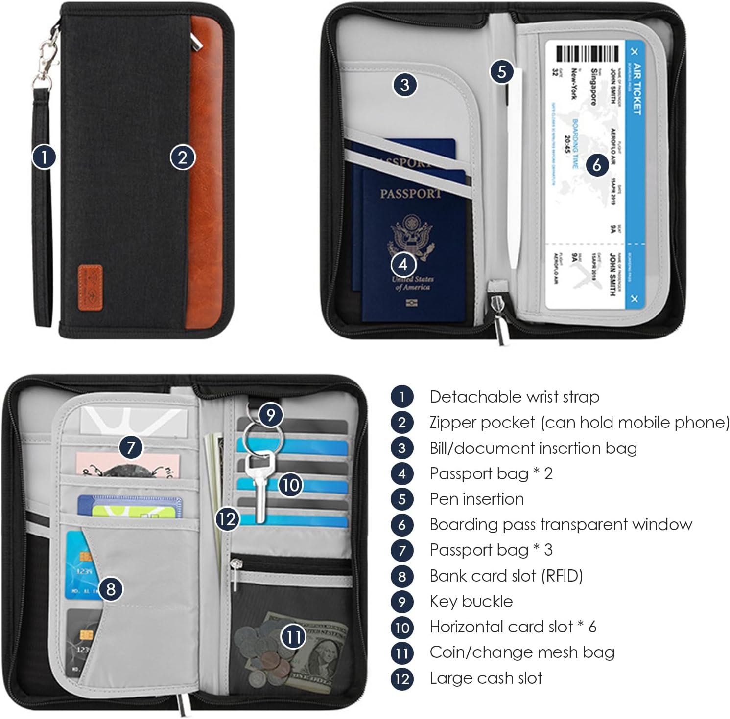 Passport Holder Family – RFID Blocking Passport Organizer,Travel Essentials Premium Wallets Credit Cards Case, Multi Pocket Waterproof Document Bag for Men Women Airports Vacations Business Trips
