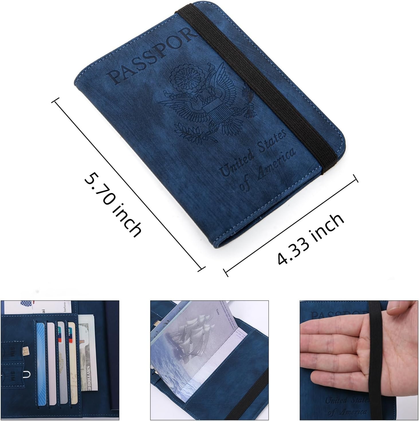 Passport Holder for travel – Cover Wallet -Travel Essentials RFID Blocking Travel Accessories for Women Men (navy blue)