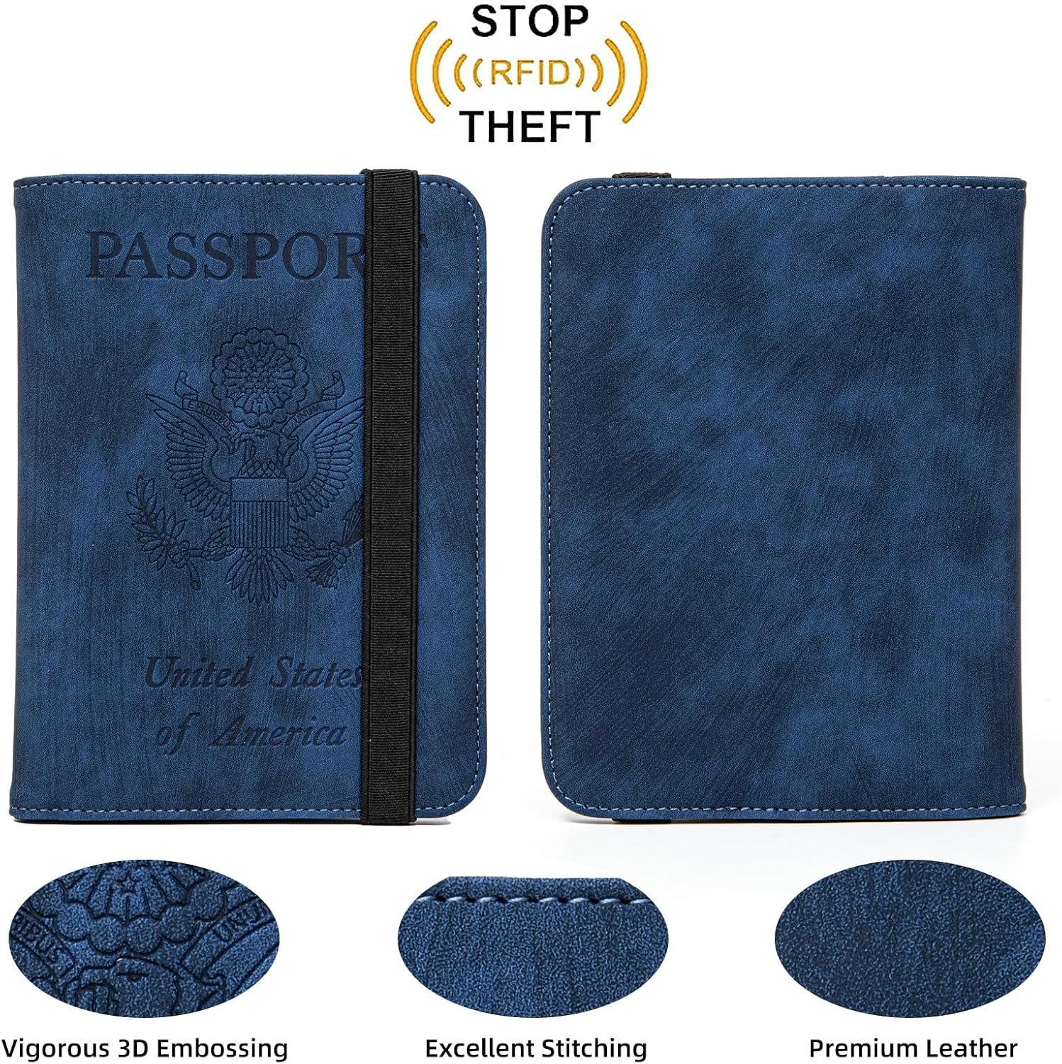 WATER RESISTANT HOLDER / RFID BLOCKING – Passport cover with Built-in RFID Blocking material prevent personal information disclosure, such as ID cards, credit cards, CDC vaccination card, driver license and passport, and keep your personal information securely everywhere. What’s more, our passport case is water resistant, so you don’t have to worry about getting your passport and cards wet during the journey.
