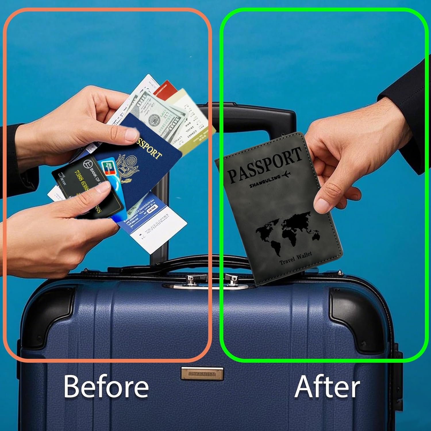 Easy and Efficiency: Our passport holder wallet is designed with elastic band for close, protect your passport and cards
