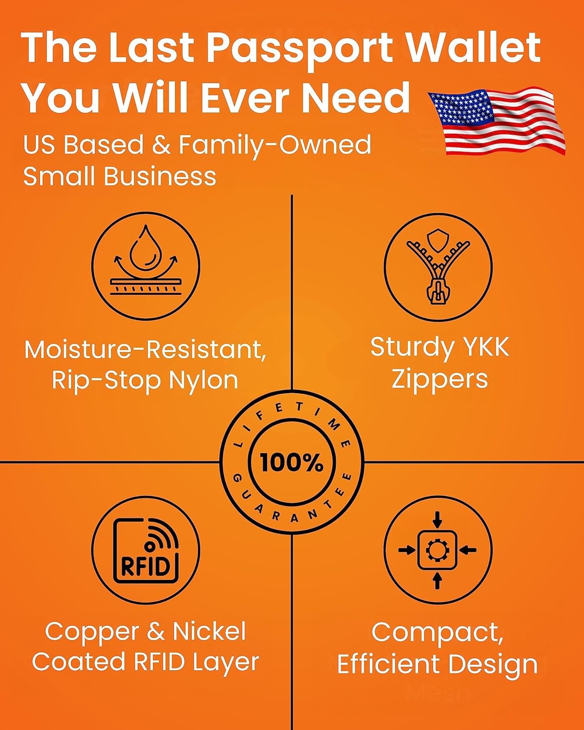 Designed for Comfort and Organization – Lightweight and durable, this passport holder features zippered pockets to keep essentials neatly stored. The moisture-wicking rip-stop nylon helps keep your valuables dry and secure during your travels.