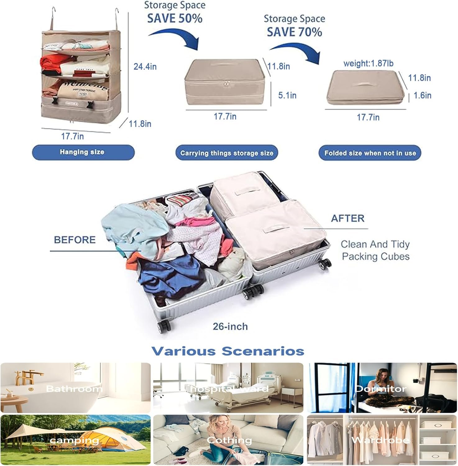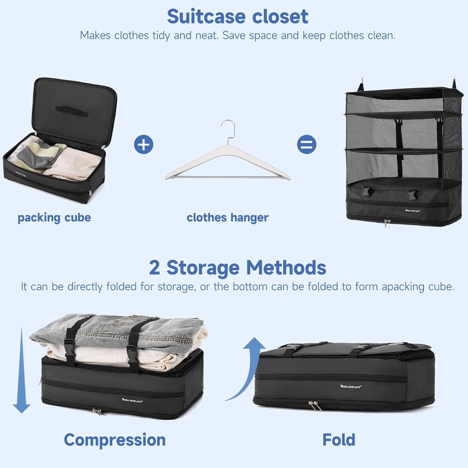 【Versatility】Portable travel organizers can put their luggage in and fold it up for easy use. When unfolded, it can be hung in the hotel closet to save time.