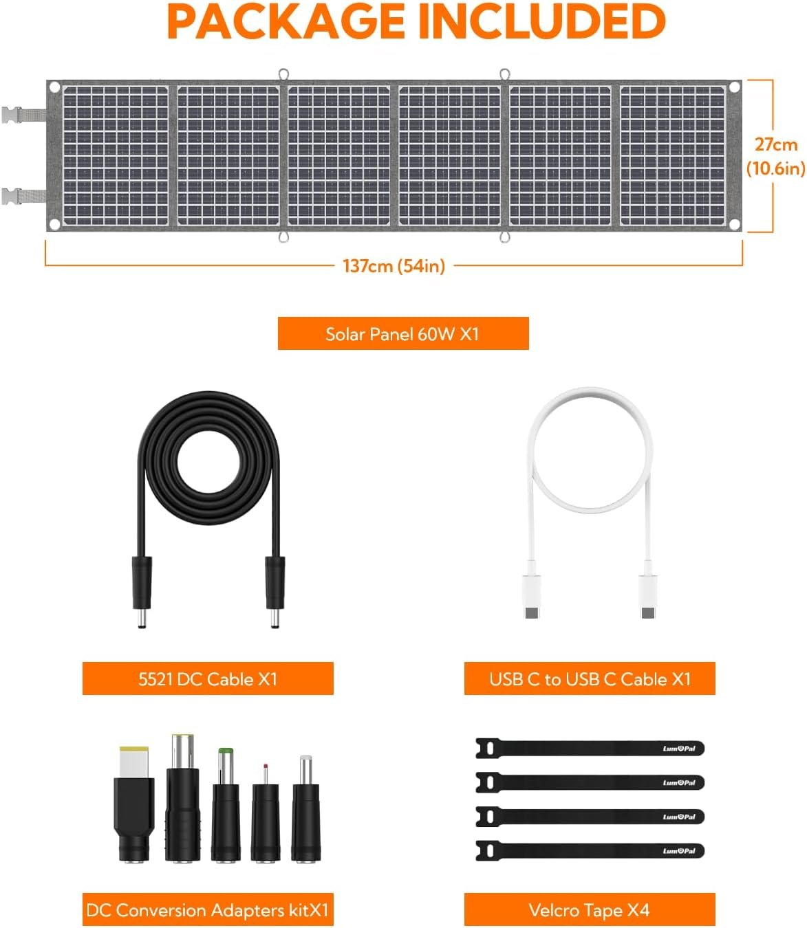Easy to Carry – Collapsing to a mere 10.6*8.9 inches and weighing just 4.4 pounds, the LUMOPAL solar charger kit is highly portable and lightweight, making it effortless to fit into any camping or travel backpack. Carry the LUMOPAL Solar Panel for a remarkable 60W output in a notebook-sized package.
