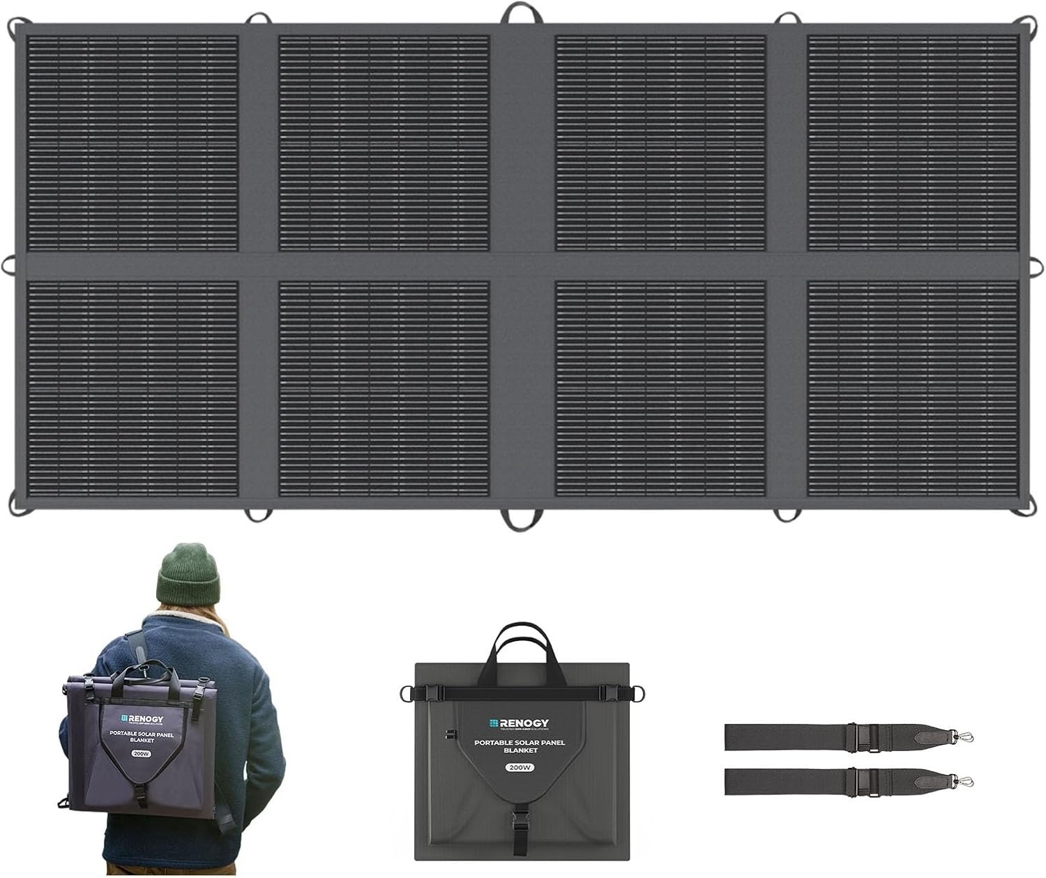 Renogy 200W Portable Solar Panel Blanket, 25% High Efficiency N-Type Solar Cell, Lightweight Foldable Solar Panel for Power Station Generator, RV, SUV, Truck, Camping, Home, Off Grid