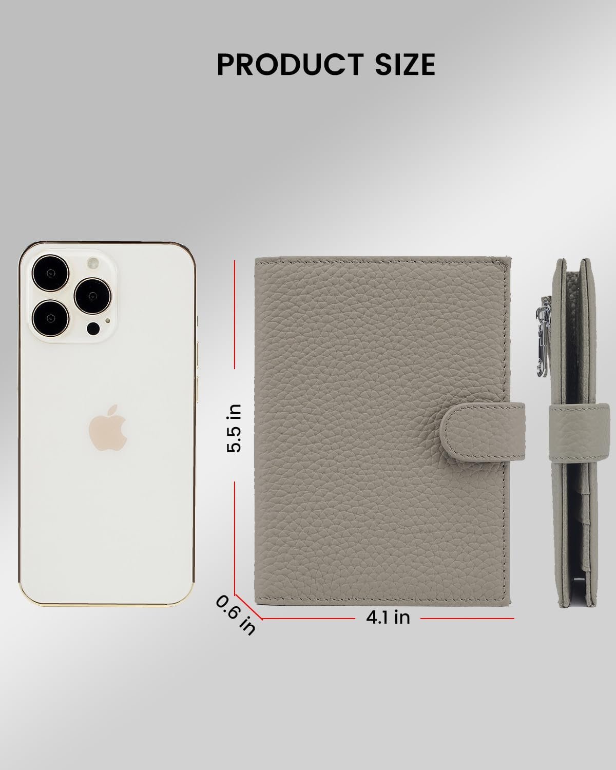 RFID Passport Holder Travel Wallet for Women, Leather Passport Cover Wallet with Card Holders SIM Slots,Zippered Coins Pocket and Cash Slot Slim Compact Travel Wallet (Eephant Grey)
