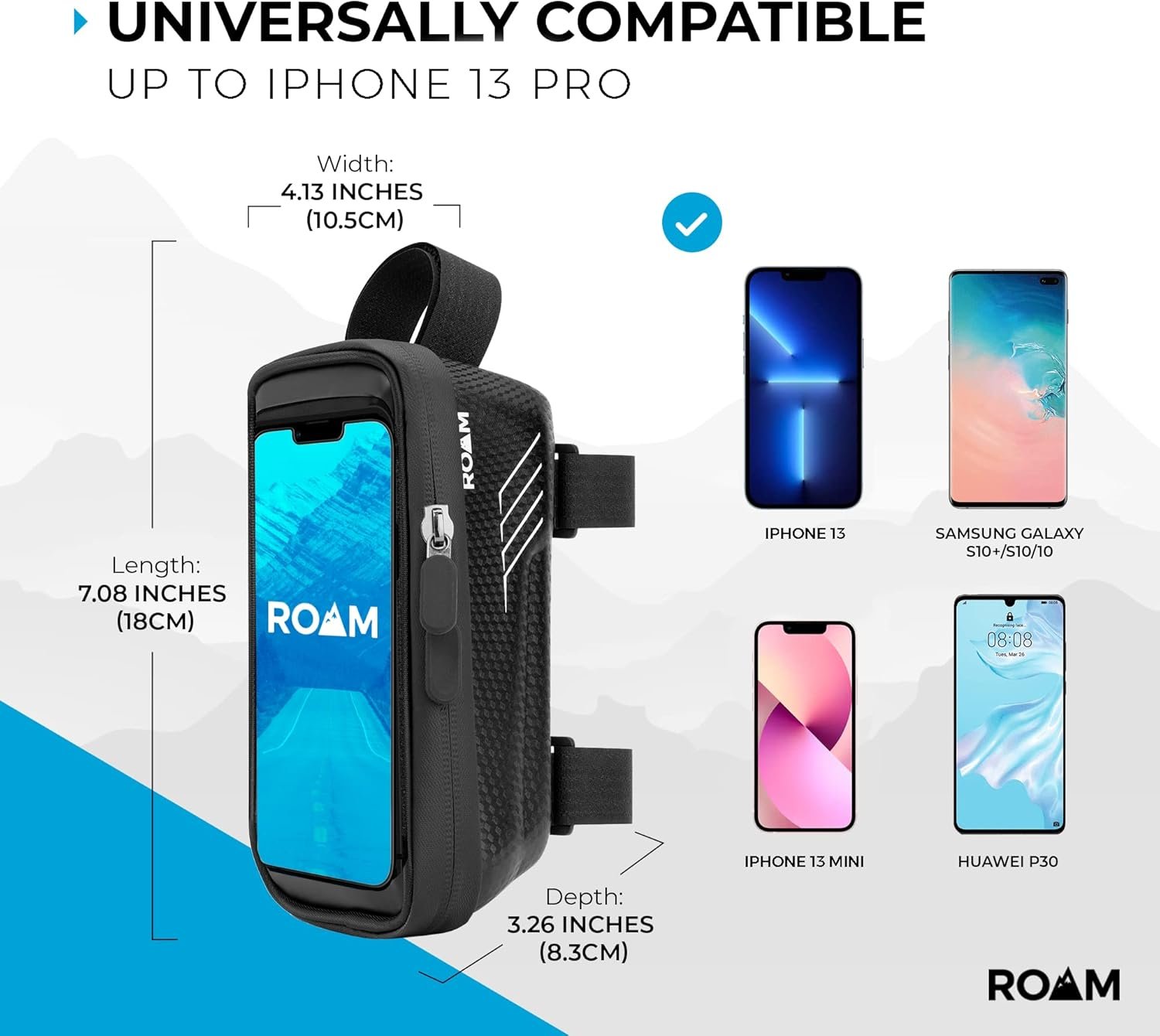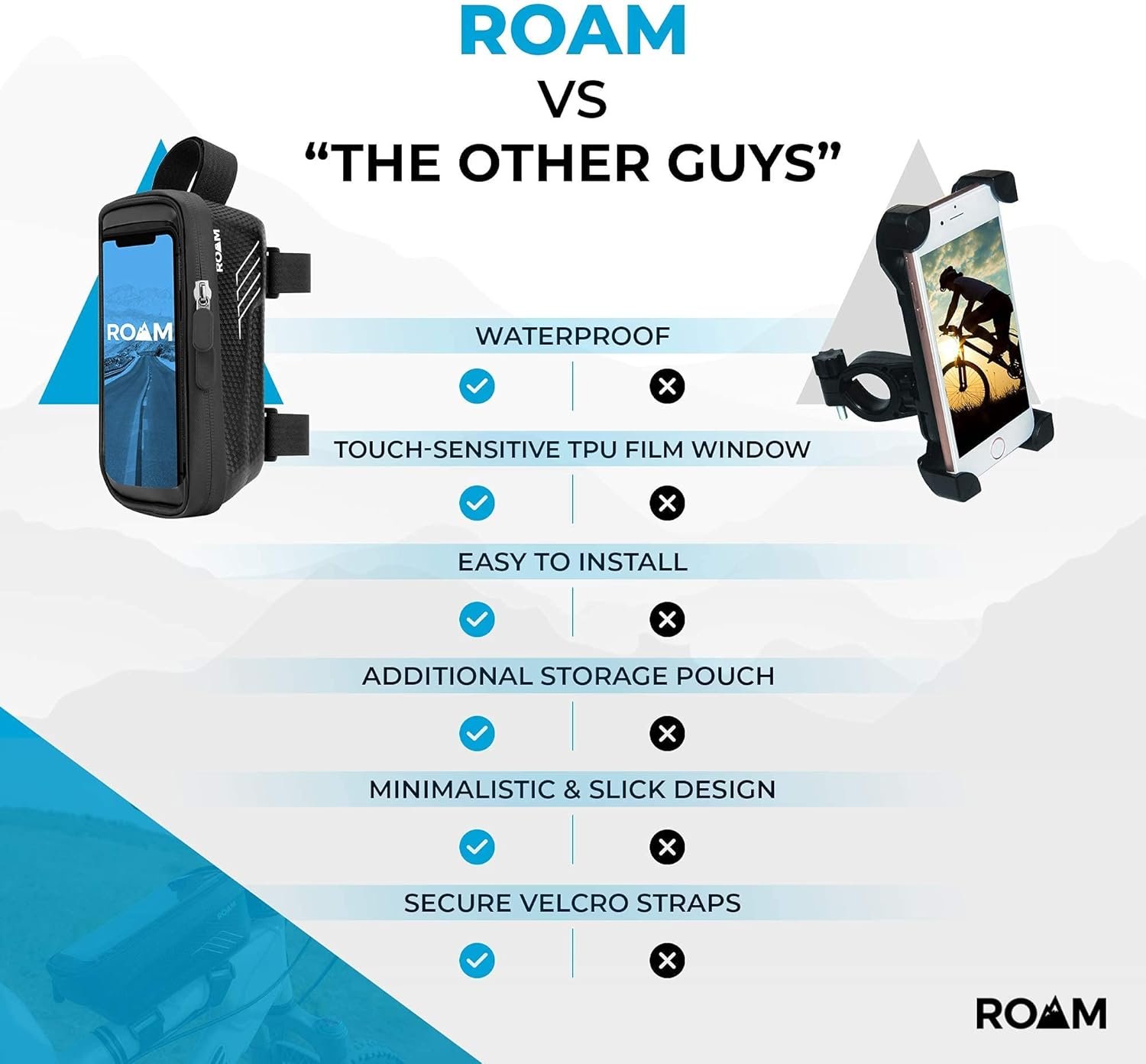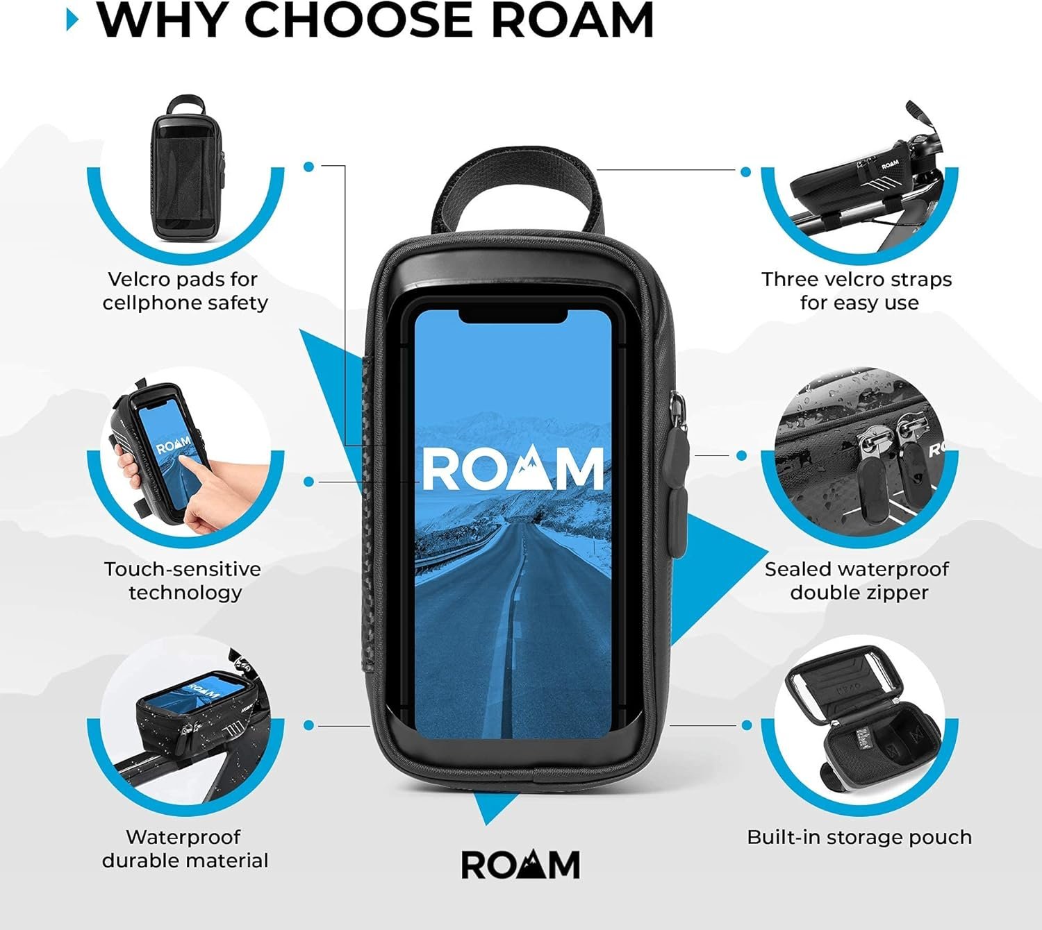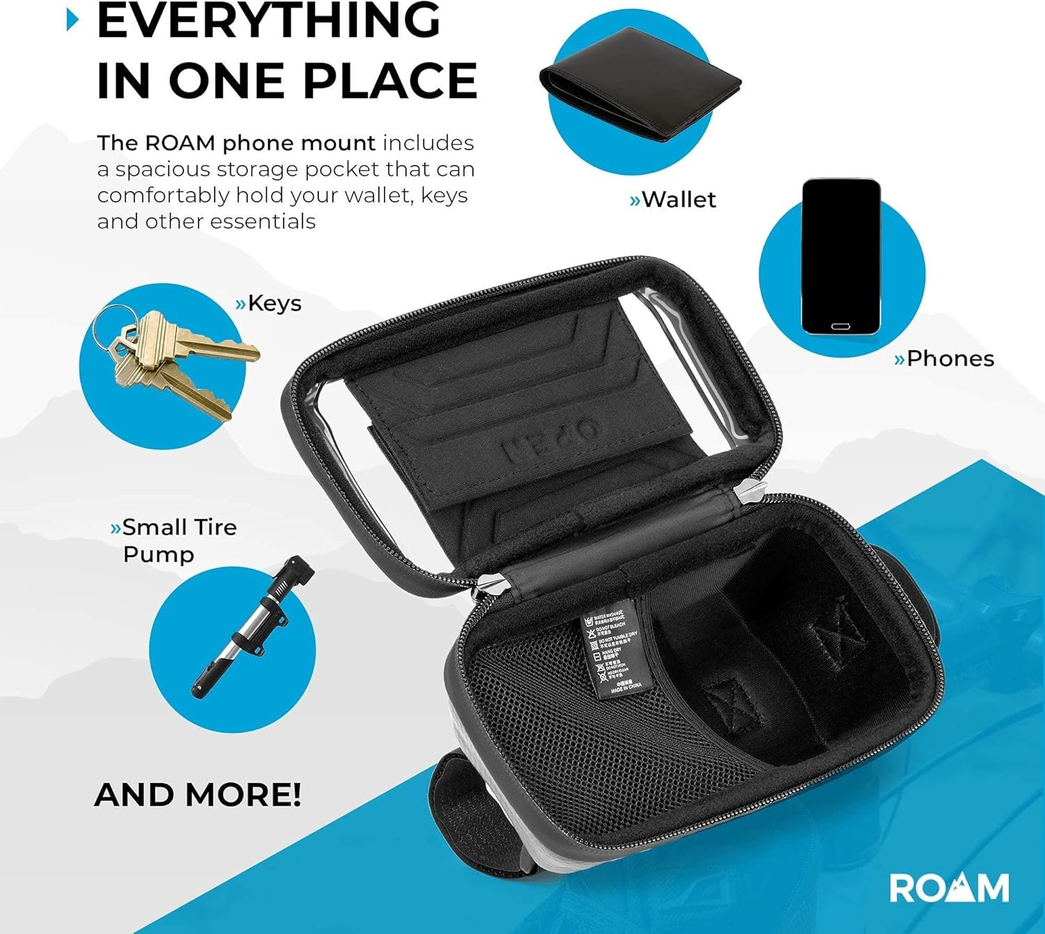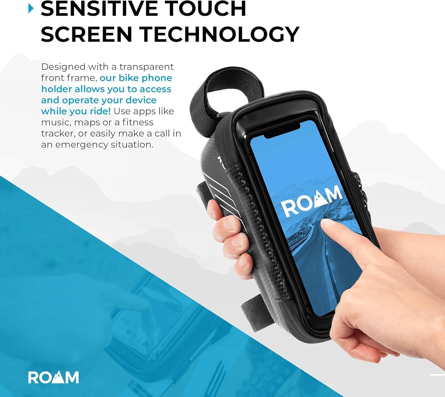 Roam Bike Universal Phone Holder + Waterproof Zipper Storage Case – Fits Smartphones Up To 4″ x 7″ – Velcro Strap Mounts To Bicycle Frame – Full Touchscreen Capabilities – Black