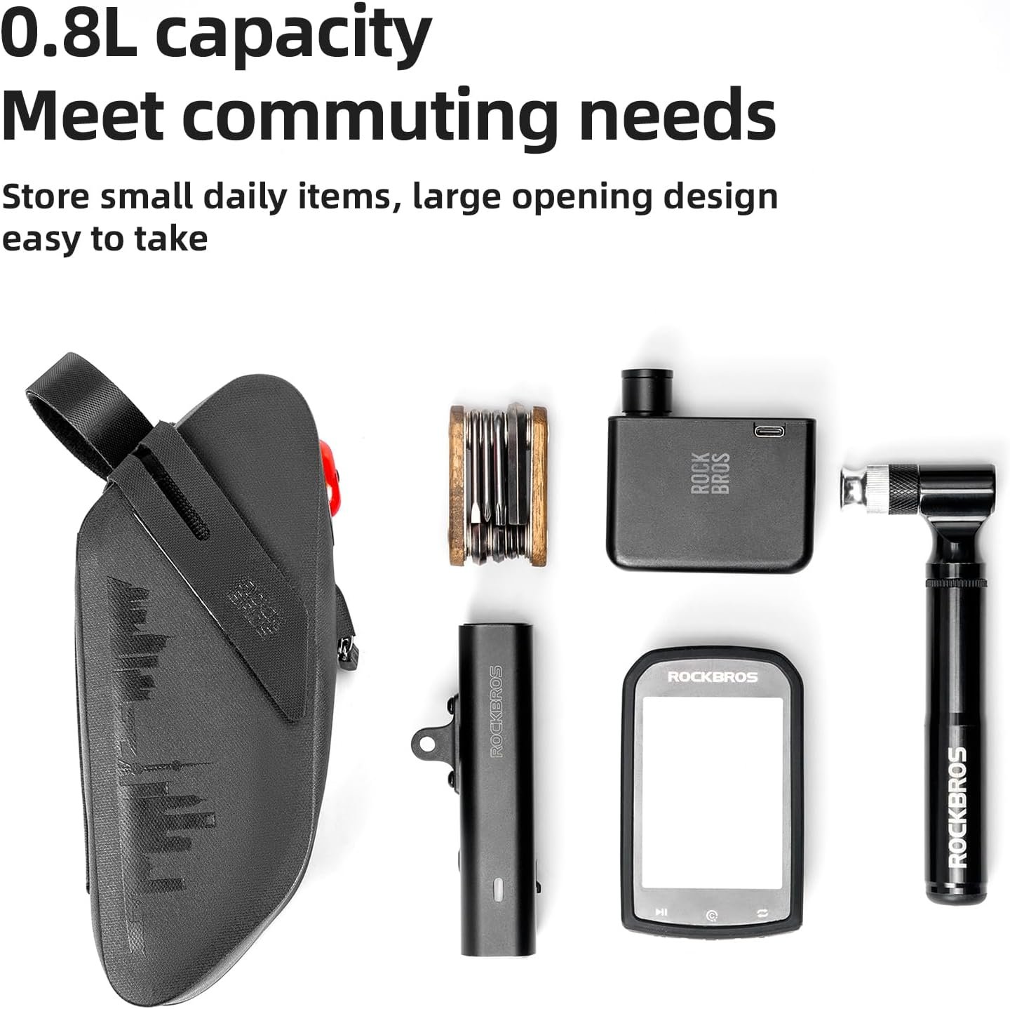 [0.8L Capacity for Essentials]: Compact yet spacious enough to store essentials like keys, wallet, and repair tools. Wide-opening design for easy access to saddle bags.