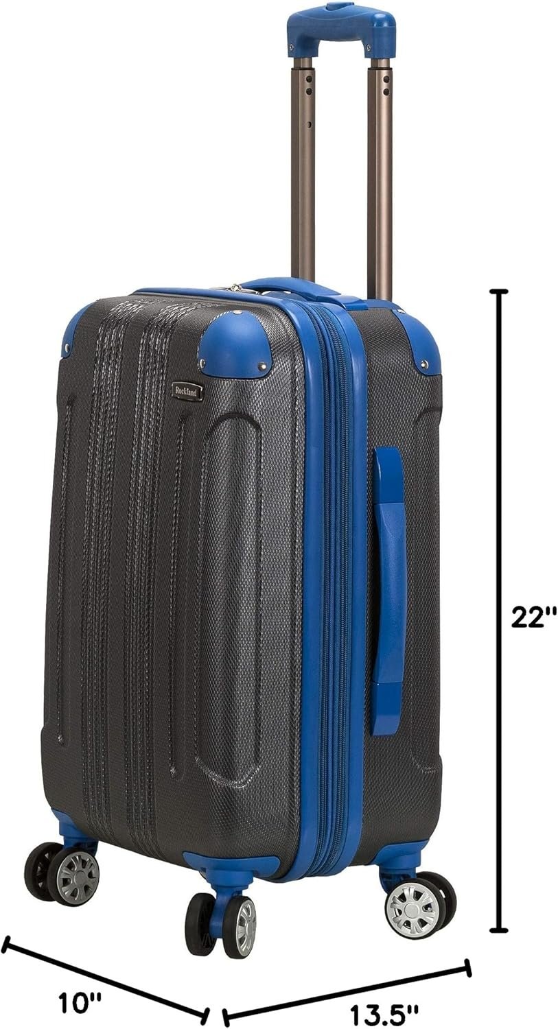 This carryon is made of ABS. The major benefits of this material – it is extremely lightweight, it is durable, and protects the contents of your luggage. Four multi directional spinner wheels rotate 360 degrees for easy maneuverability. This luggage allows you to pack more while avoiding the excess weight surcharges imposed by most airlines. • Multi-directional spinner wheels for easy maneuverability • Modern internal chrome telescoping handle with push button handle. • Interior mesh and zip pocket and elastic pocket * 5 year warranty * 20″X13″x9″ (22″ height with wheels) weighs 6.5 lbs