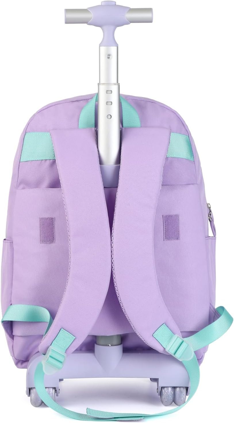 Girls Rolling Backpacks Wide Application–This girls school bag features ergonomical design, adopted with a breathable and thickened sponge of the padded shoulder strap and back panel, this cute backpack make the girls comfortable to wear, relaxing their shoulder and reducing pressure