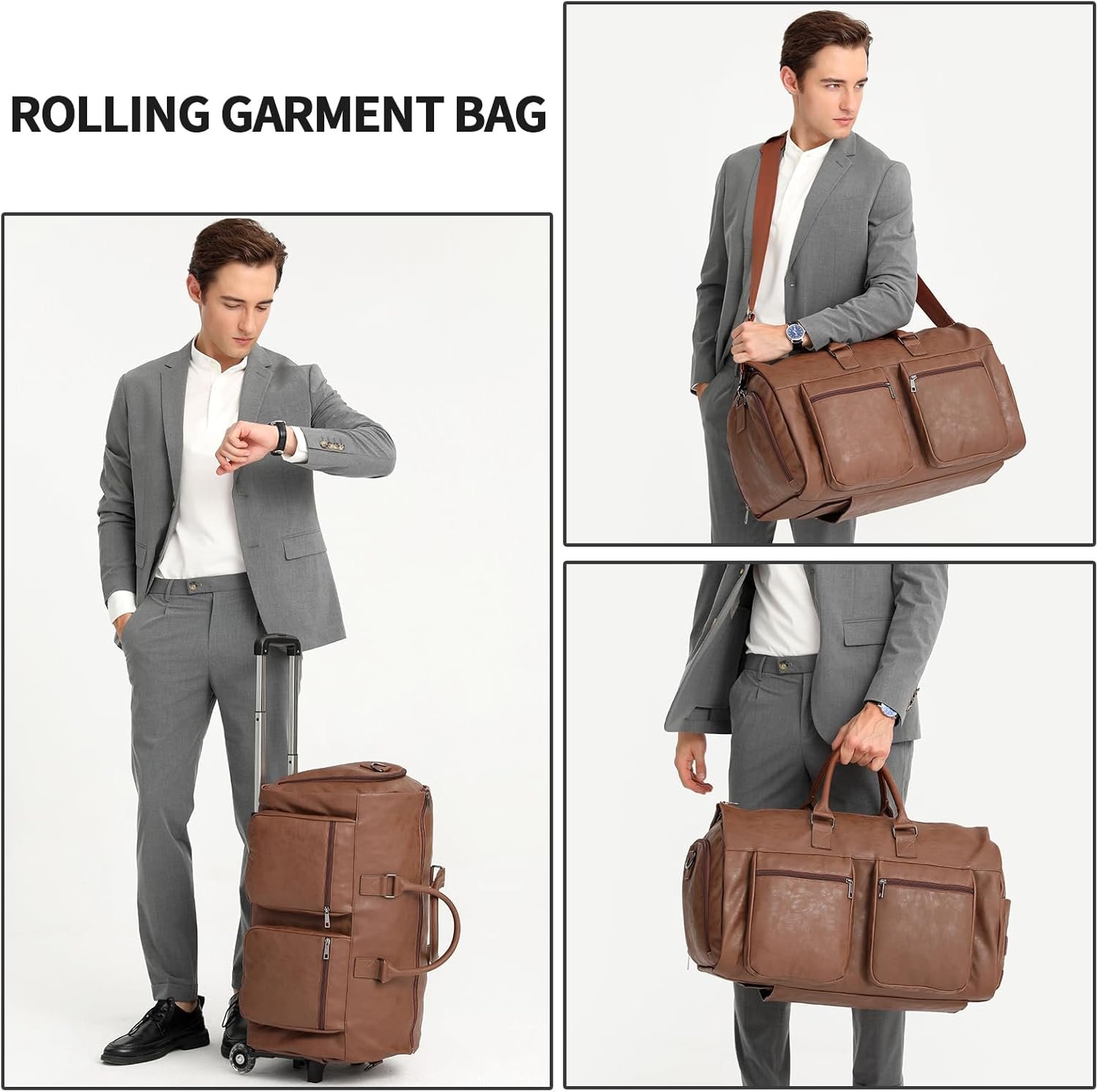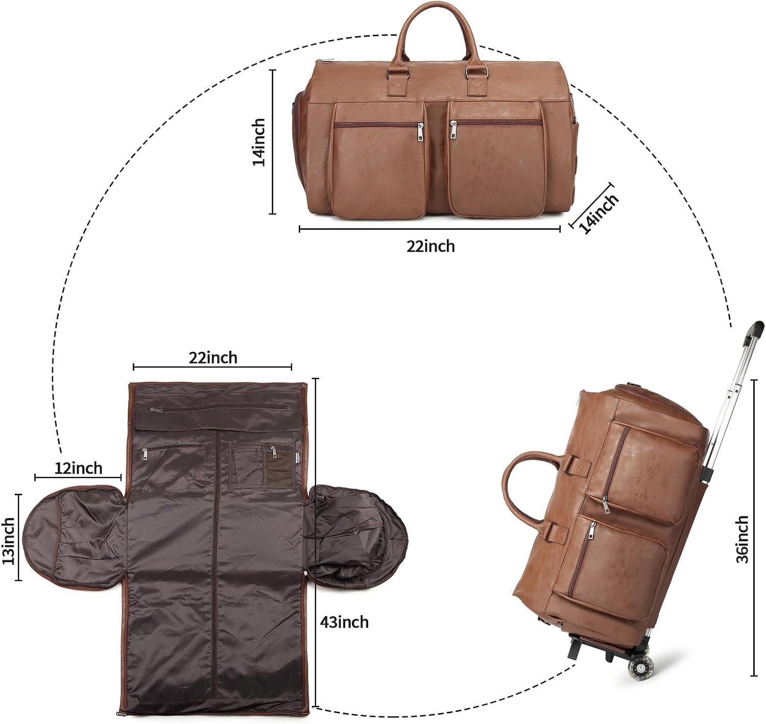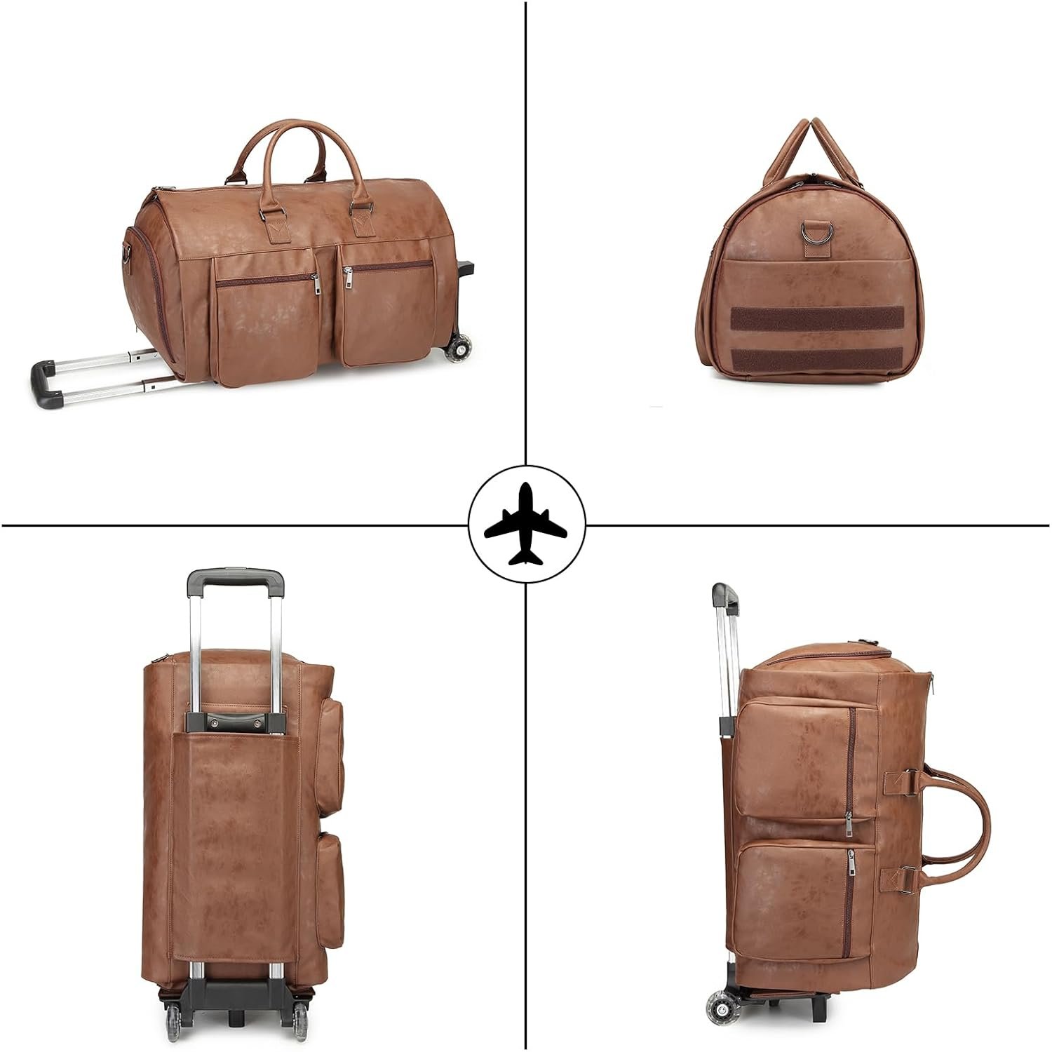 Rolling Garment Bags for Travel,Convertible Duffle Garment Bag Roller Bag Carry on Garment Bag with Wheels Luggage Rolling Weekender Roller Duffle Bags for Travel-Brown