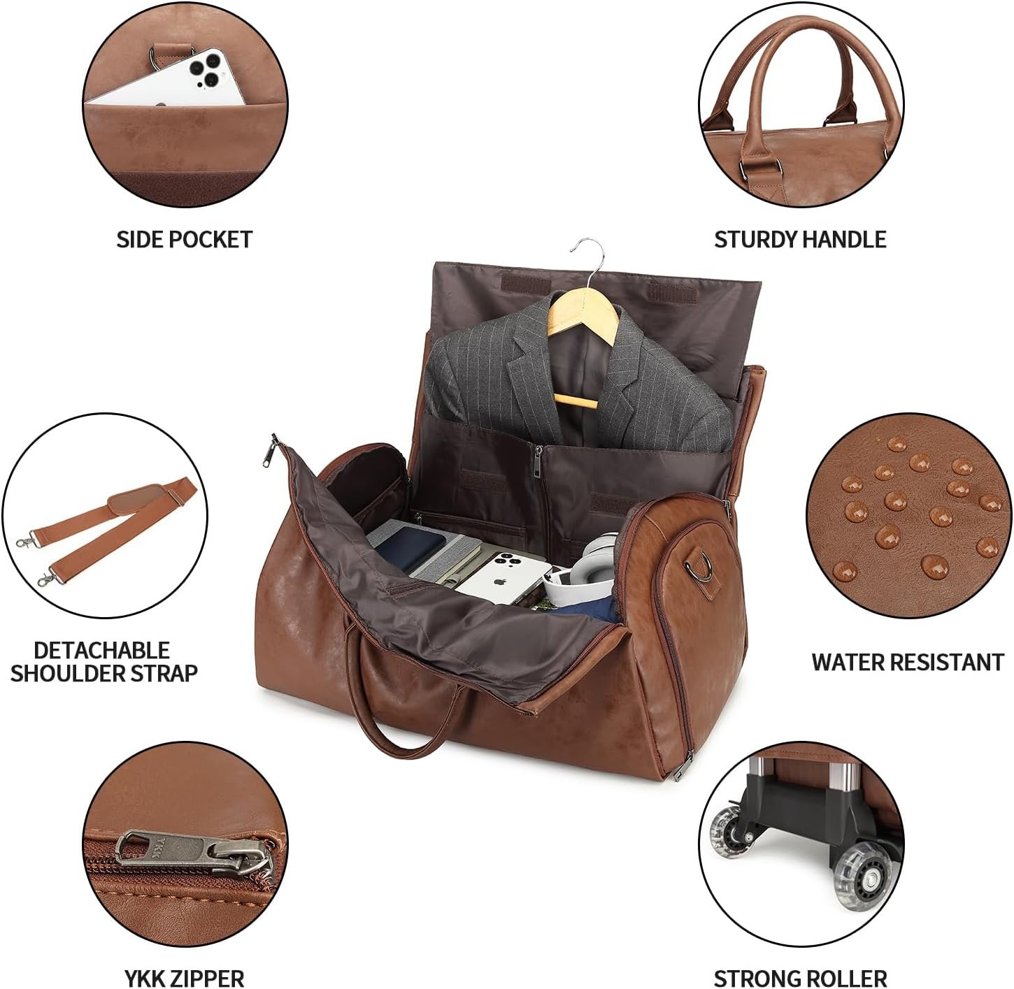 Quality Materials & YKK Zipper: Made from strong and durable Oxford fabric, the trolley duffel suit bag with high quality YKK zippers and waterproof fabric garment luggage bag ensures you get value for money. This rolling garment bag for travel can be carried by handles, detachable shoulder strap or trolley, providing long-lasting durability for business trips or holidays.