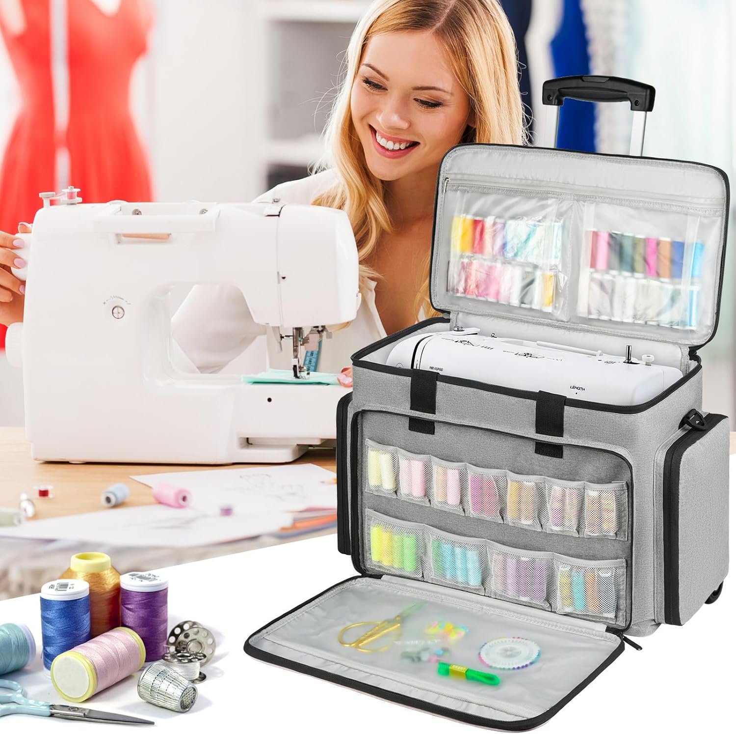 Trolley Design: This sewing machine carrying bag comes with a detachable, retractable and foldable trolley. The frame is sturdy and strong load-bearing, allowing you to easily carry your sewing machine and accessories anywhere, and no longer have to worry about the bag being too heavy to carry. Enjoy your sewing journey