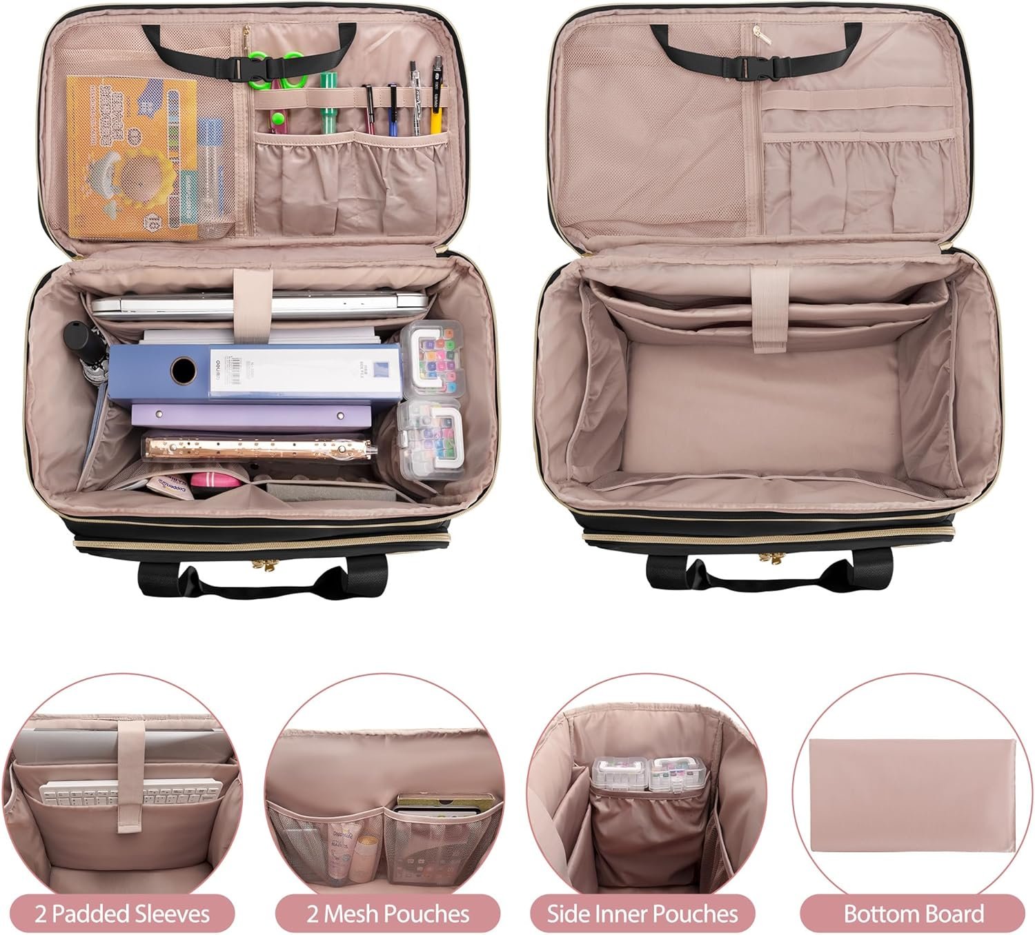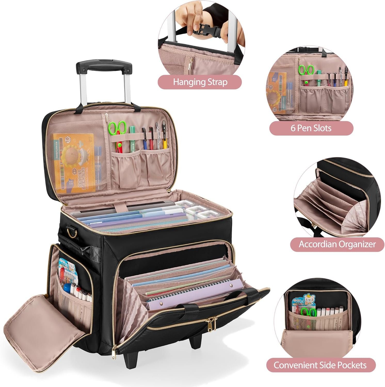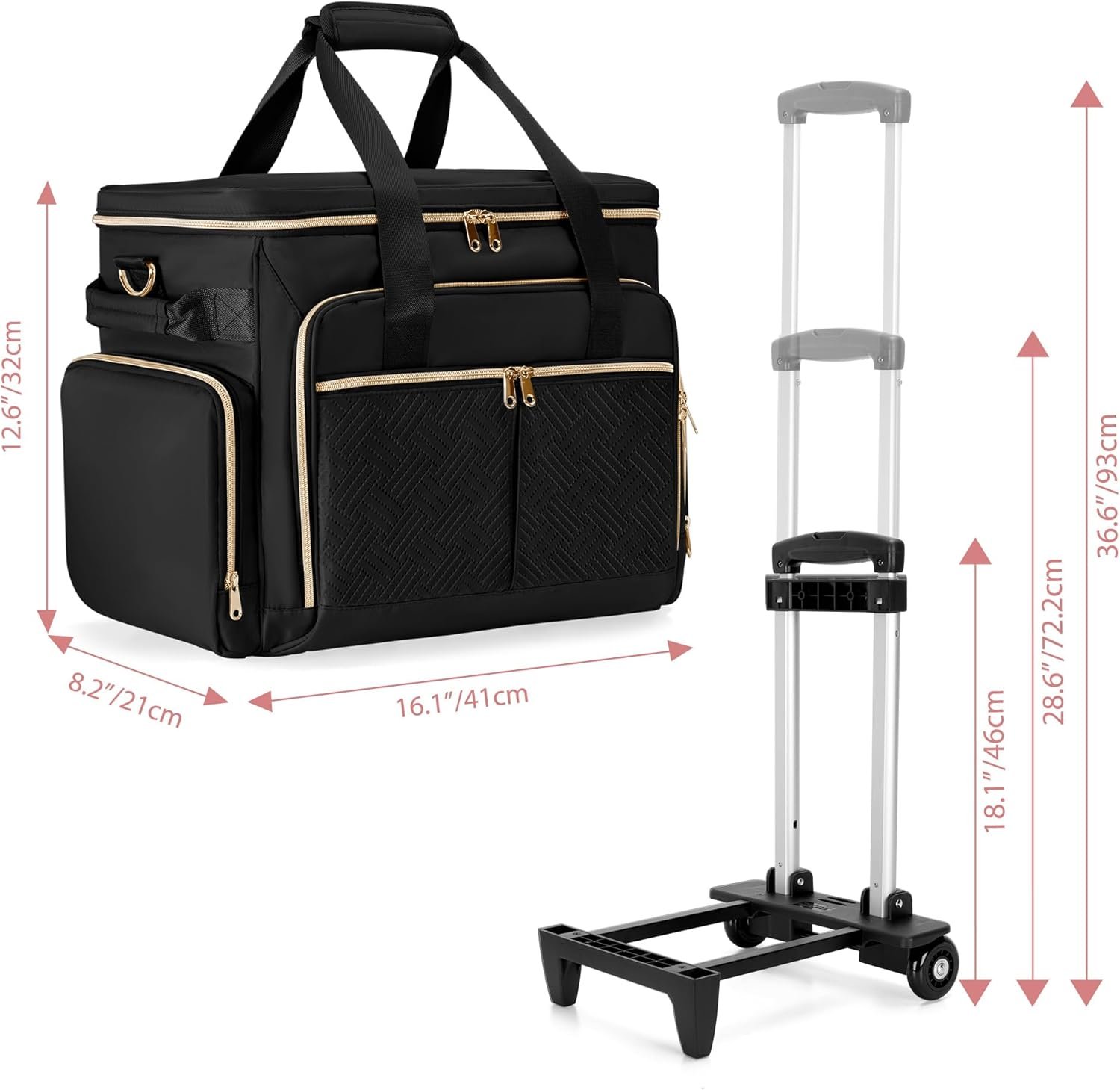 Rolling Teacher Bag with Wheels, Teacher Tote Bag with Detachable Trolley, Fits for 15.6″ Laptop(Patent Design)