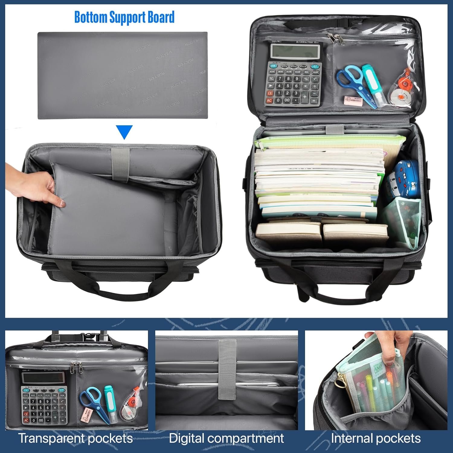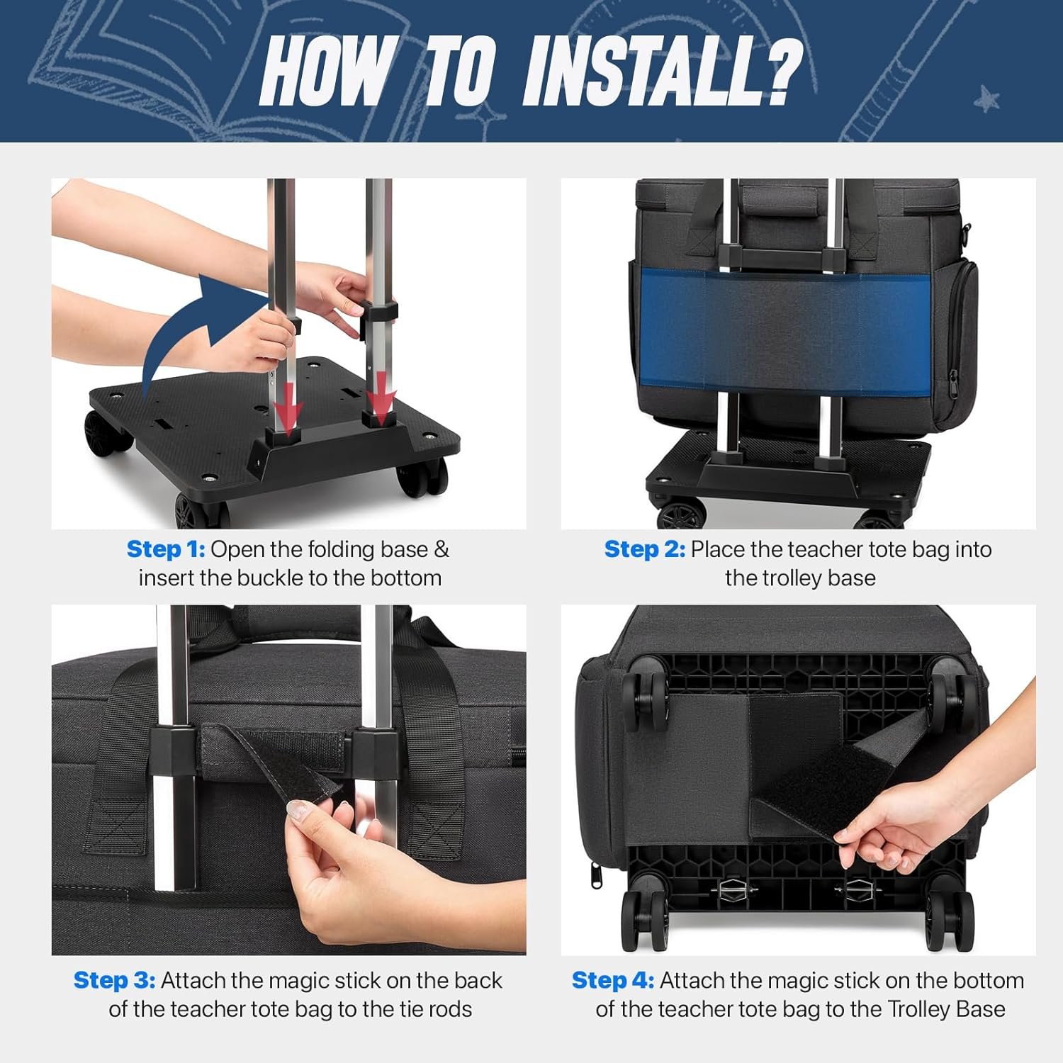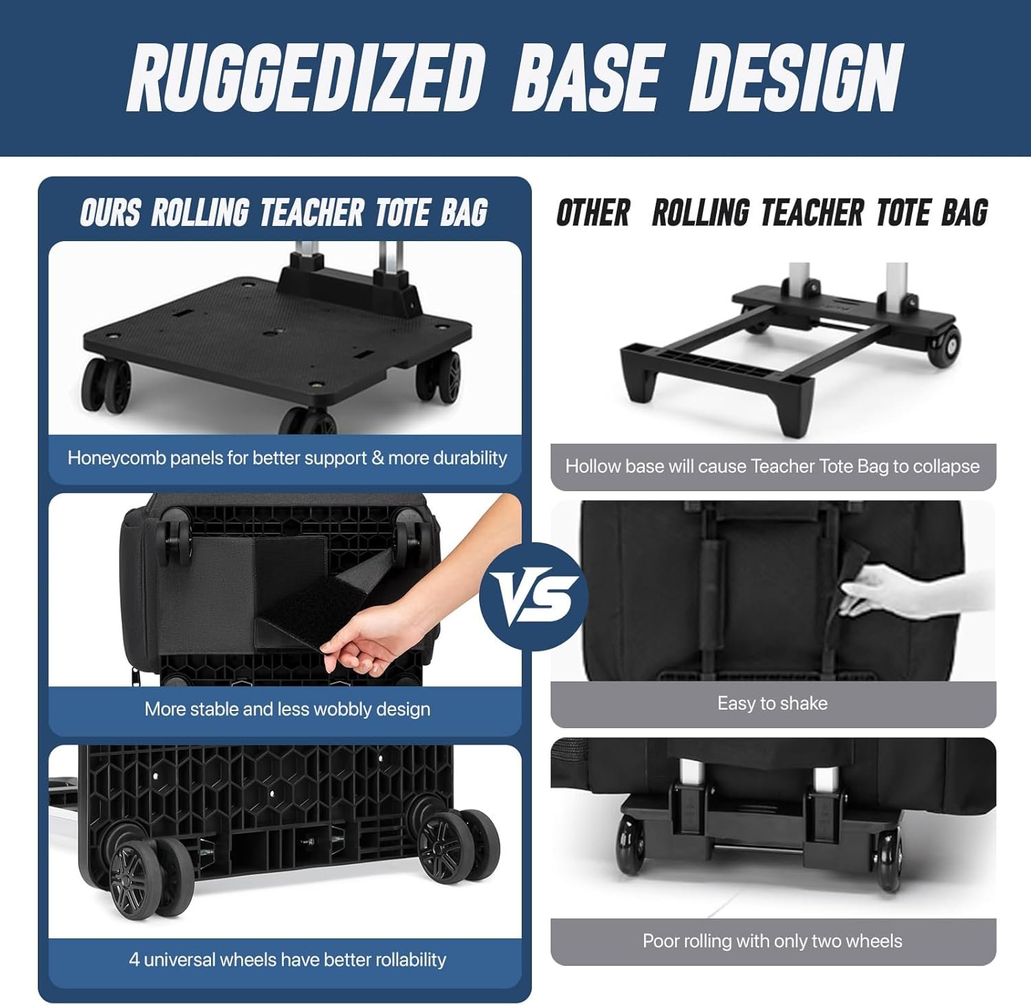 Upgraded durable function: The teacher tote bag uses double-layer 360-degree rotating rollers for more stable and smooth rolling. The complete base plate provides better support, and the increased Velcro at the bottom ensures better fixation