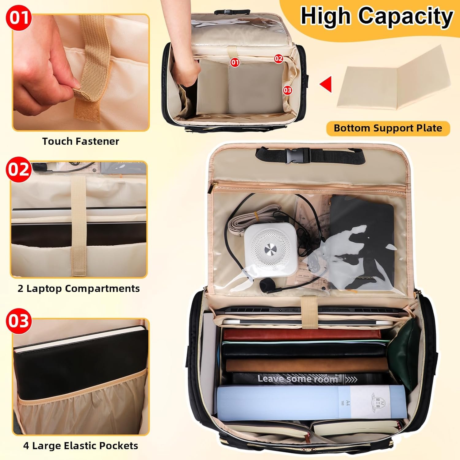 【Spacious Main Compartment】The rolling teacher tote bag with laptop compartment (18.9*13.8*9.2 inch) can hold folders, iPad, and 15.6 inch laptop. The thick bottom padding and velcro that provide bottom support of the teacher bag for women can ensure the safety of laptops, research papers and books.