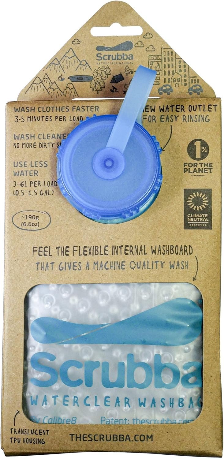 Scrubba Waterclear Wash & Dry Kit – Portable Hand Washing System – Lightweight for Travel, Camping & Hotels – Includes Quick-Dry Towel, Clothesline & Hangers – Eco-Friendly Travel Laundry Essentials