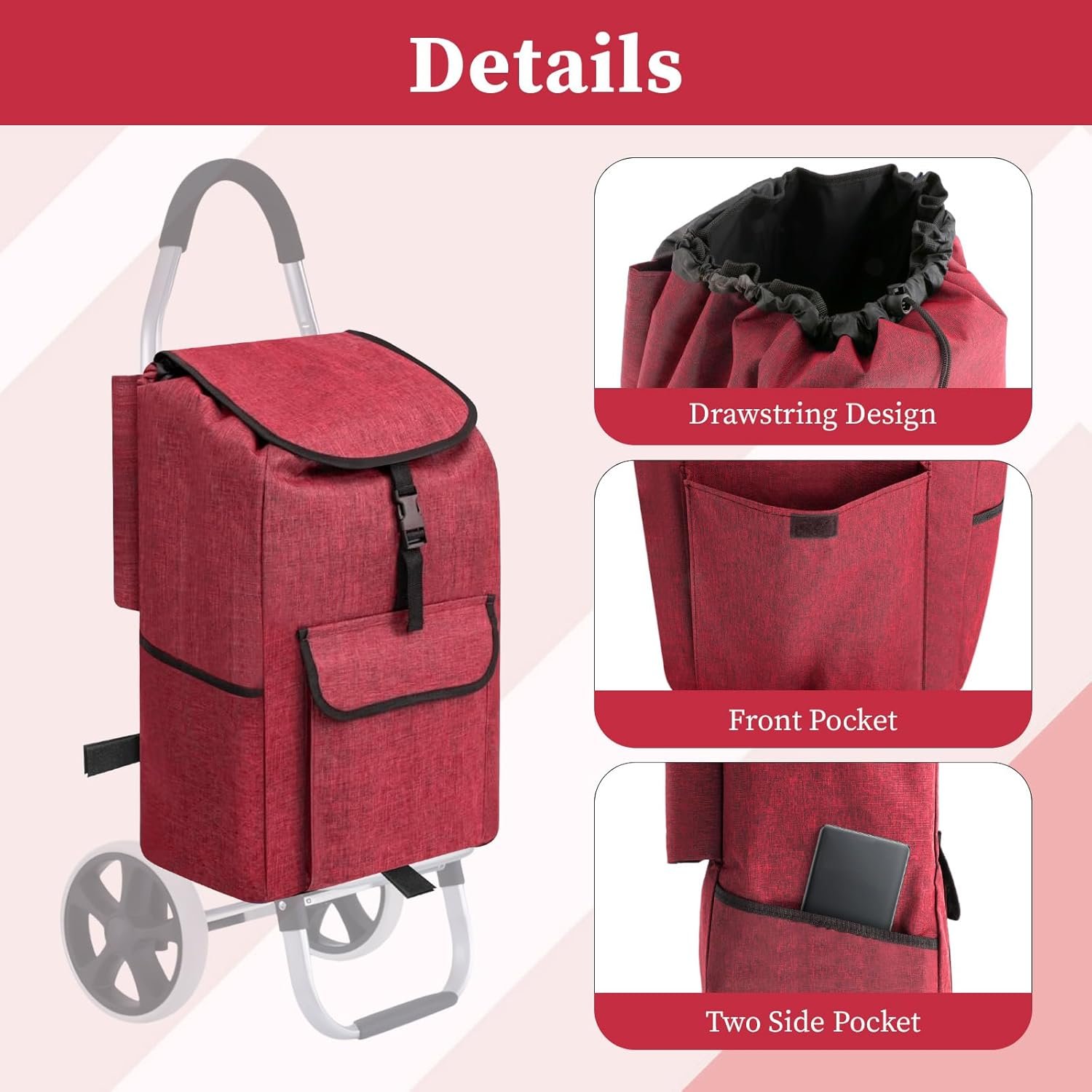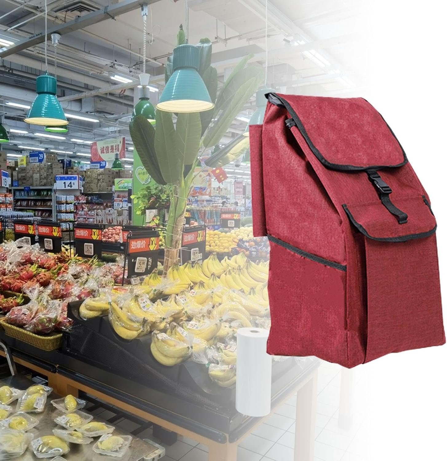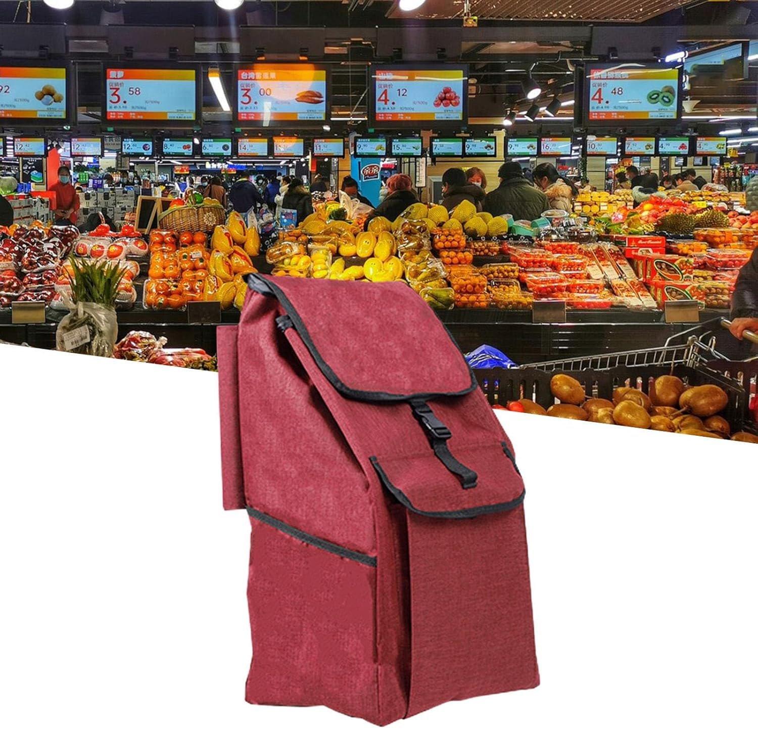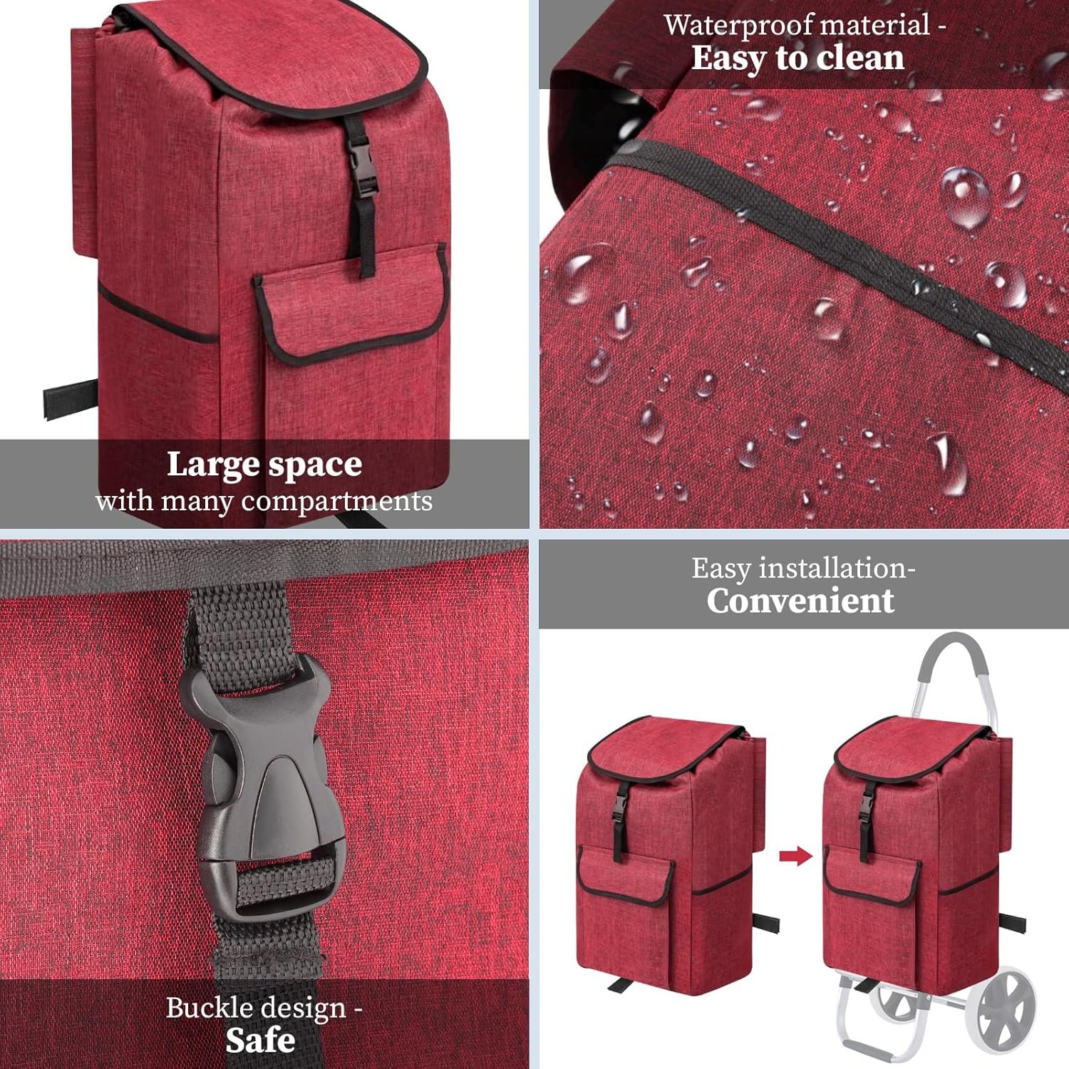 【Material】: This shopping cart bag is made of Oxford cloth, featuring a double layer waterproof design that makes cleaning more convenient.