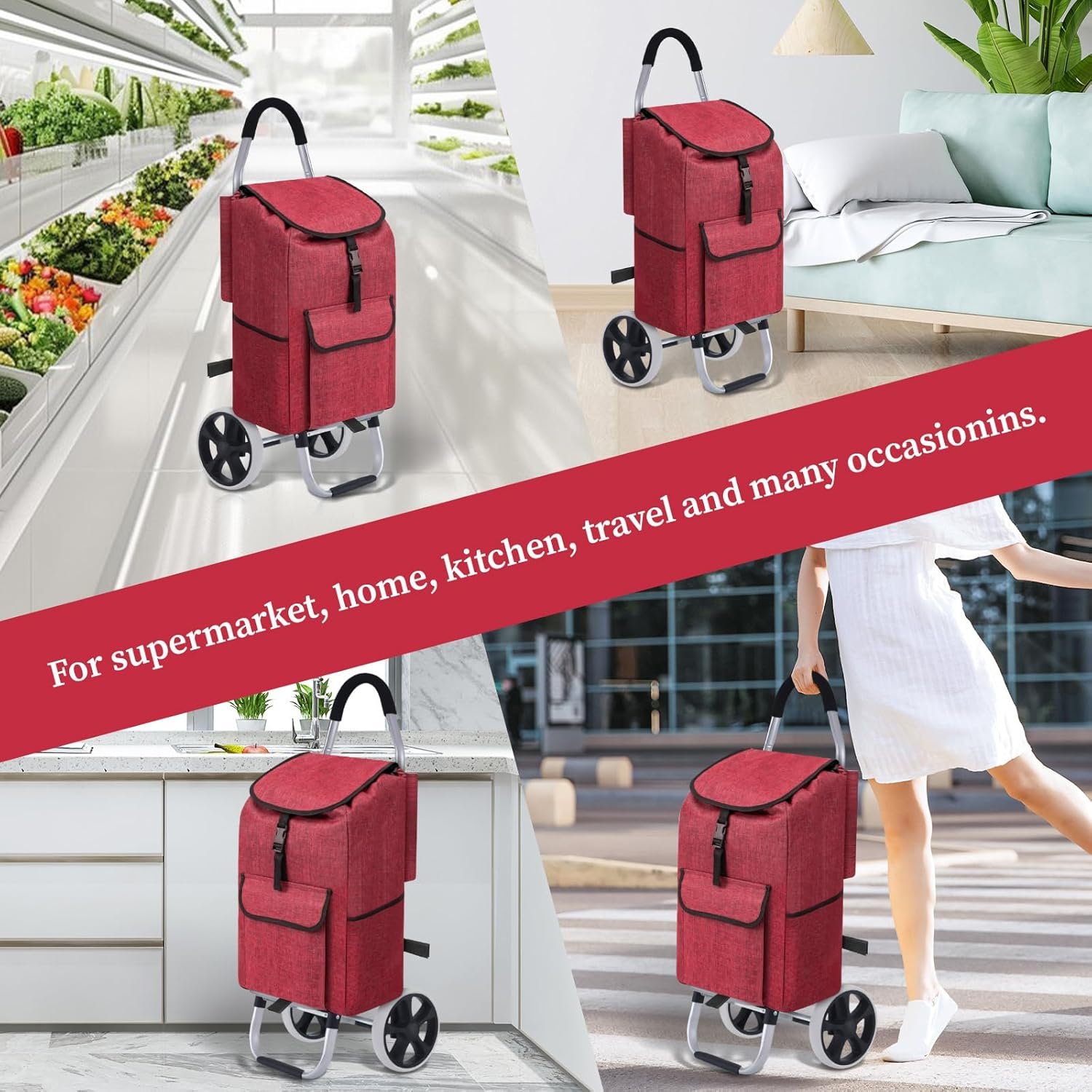【Multifunctional】: This shopping bag can be used alone or combined with a shopping cart for comfort and ease. An outdoor or indoor must have everyday bag.