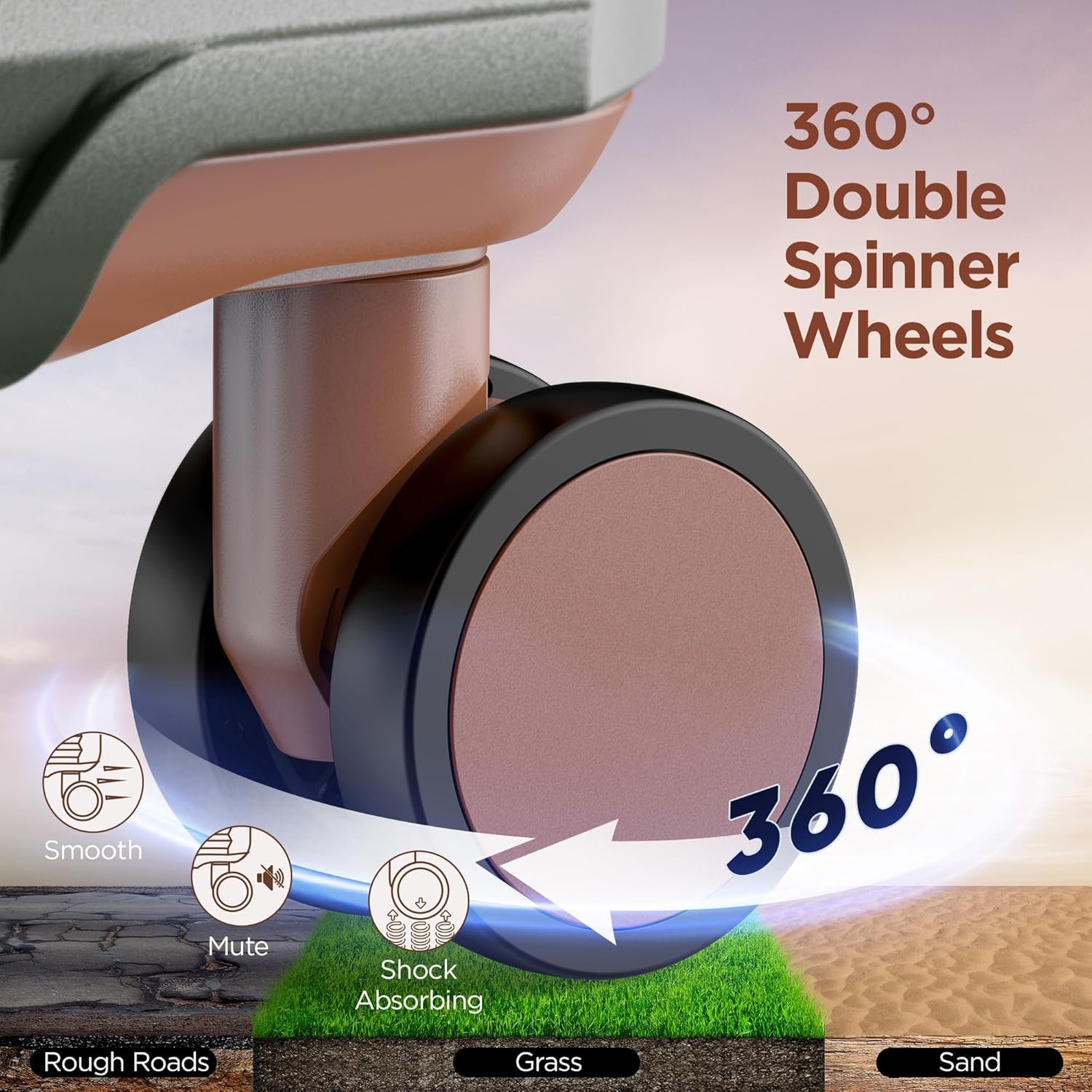 Suitcase with Double Spinner Wheels: The adjustable and sturdy aluminium 3-step telescopic handle is suitable for people of different heights, and with 360° double spinner wheels, it allows you to move quietly and smoothly on the journey.