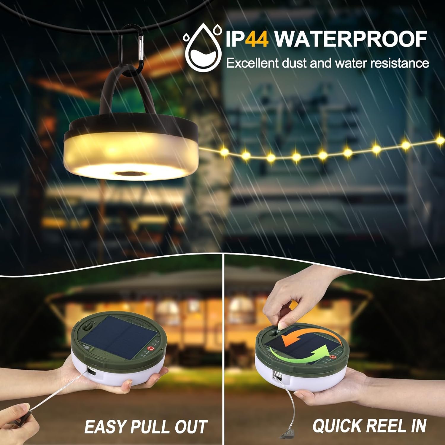 Wide Application: The camping string light is weatherproof (IP44), making it perfect for homes, gardens, yards, RVs, trucks, tents, and both indoor and outdoor use. An ideal travel companion for camping, hiking, and enhancing ambiance at parties.