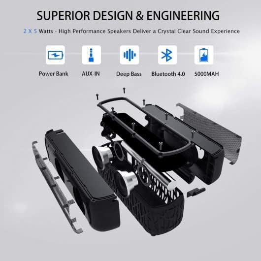 【60+ Hours Playtime & Mobile Power】 5000mAh lithium-ion batteries – powerful battery life allows you to play music up to 60 hours after a full charge. This speaker can also be used as a power bank to charge your smart phone or other mobile devices.