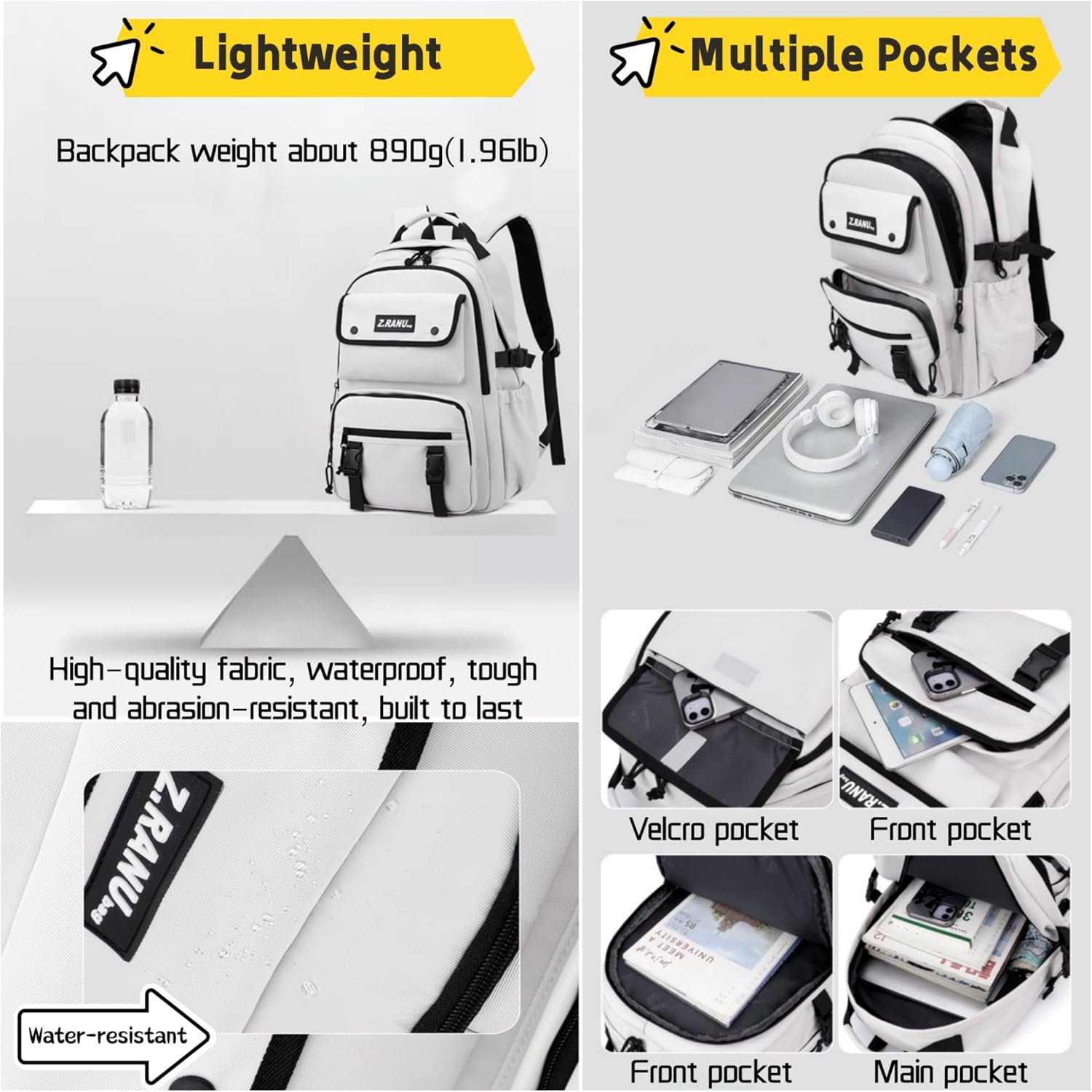 Trolley Bookbag Large Capacity:1 large main pocket, 2 front pockets can hold small items,1 secondary pocket,2 Side pockets with adjustable buckle.Multi pocket backpack, which perfectly fits the needs of students(grade3-6)