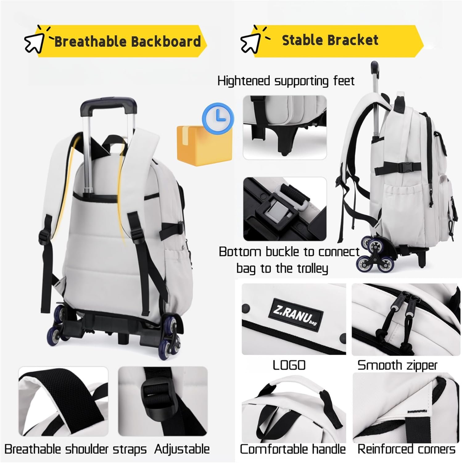 Removable:The boys backpack can be a trolley or just an ordinary backpack. If your child doesn’t want a trolley, just remove the rolling platform and it becomes an ordinary school bag.Trolley base buckle can firmly fix the backpack to the base, should not be turned over, the backpack is not easy to fall.