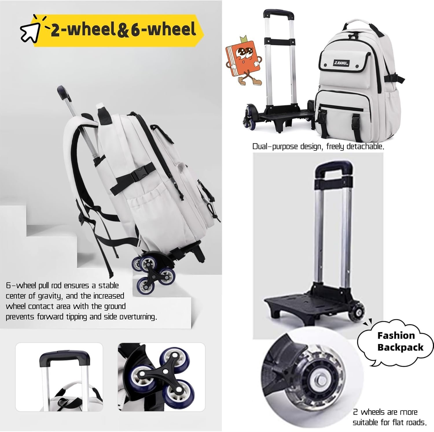 2 Wheels &6 Wheels Rolling Backpack
