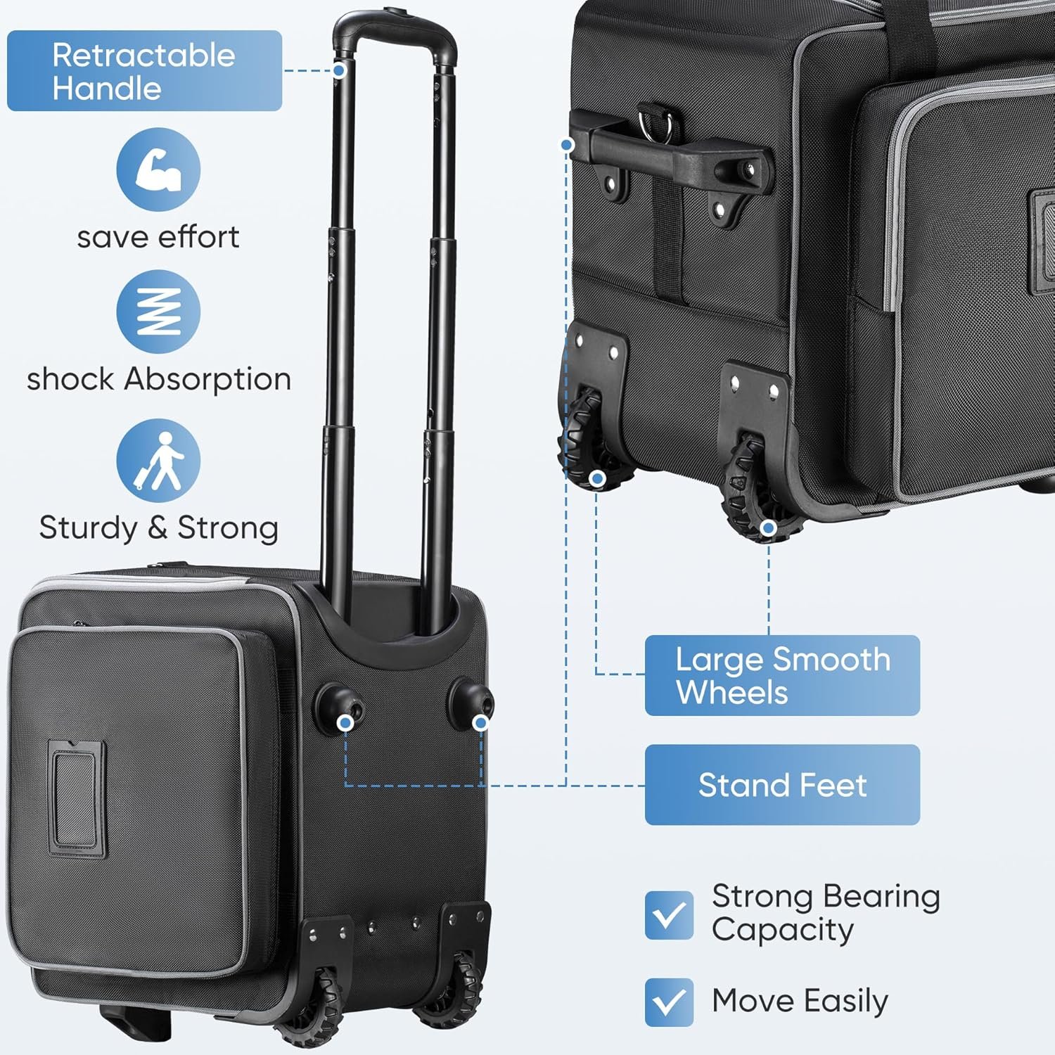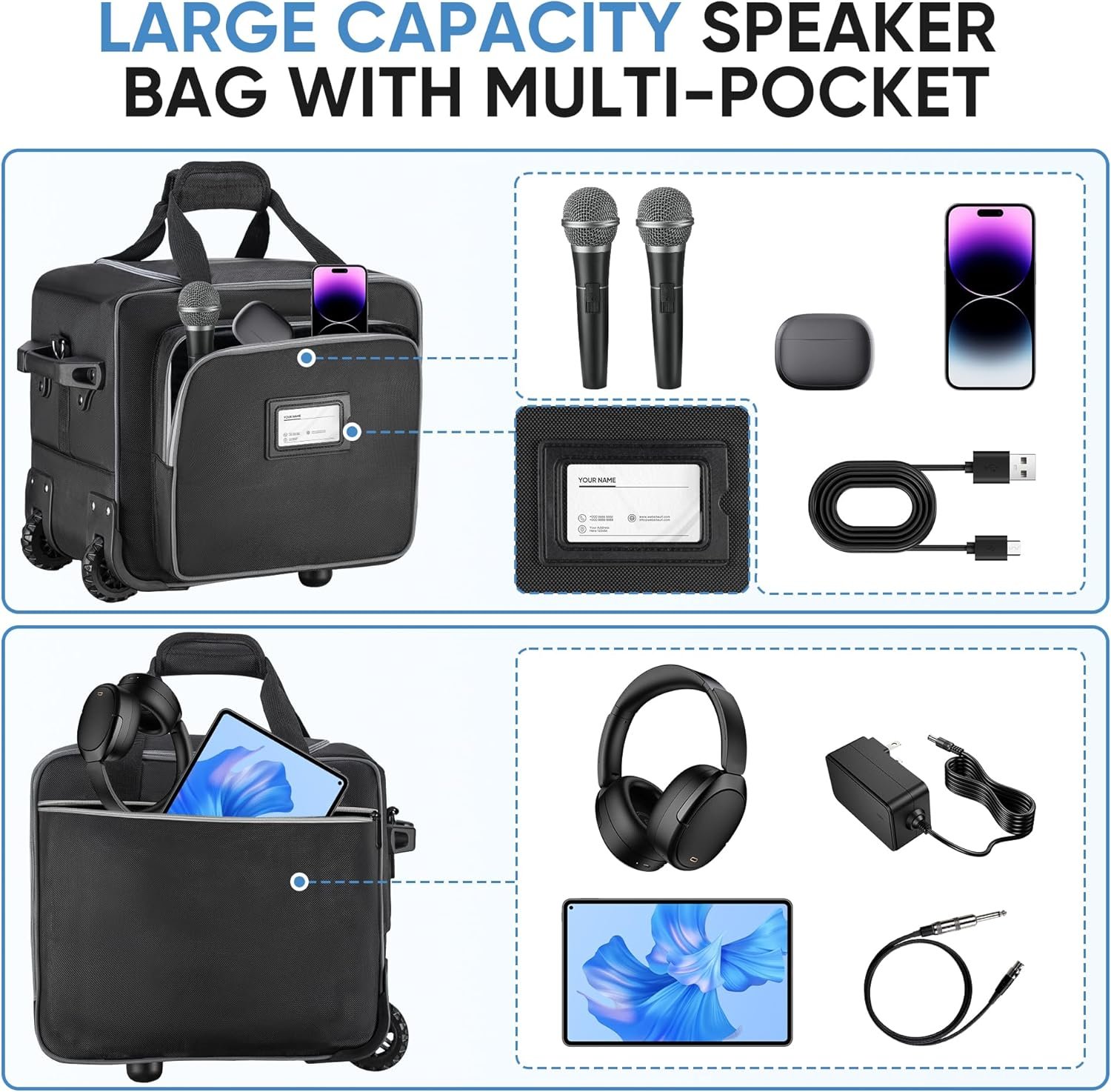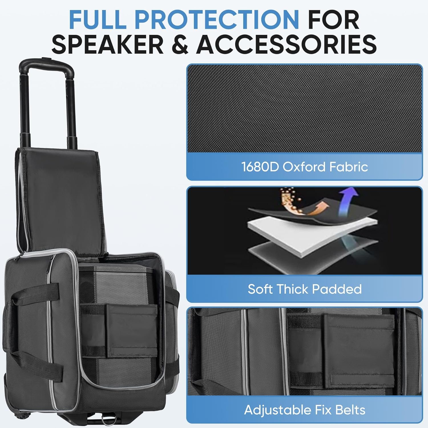 Speaker Bag with Wheels Compatible with Bose S1 Pro / S1 Pro+, Rolling Speaker Bag, Soft Protective Speaker Case Compatible with Partybox Encore Essentialand Retractable Handle, Multi-pocket