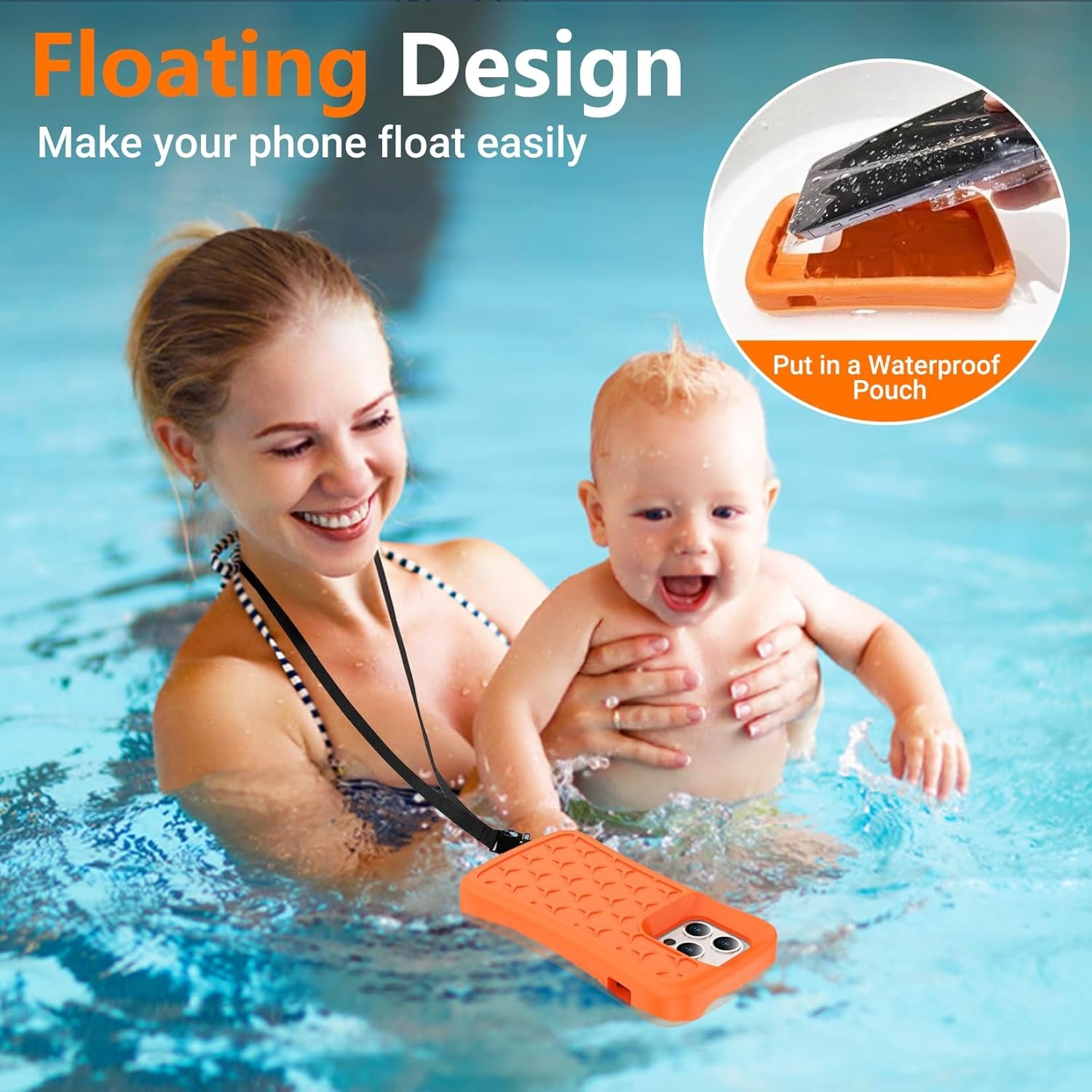 [Unique Design] Super buoyant allows it to float like a kayak without sinking. Even if your phone falls into the water,our floating iphone case can bring your phone to the surface,and the bright,conspicuous orange color allows you to quickly find your phone.Add security to your Marine entertainment.Suitable for surfing,swimming,boating, rafting,fishing and other water activities.