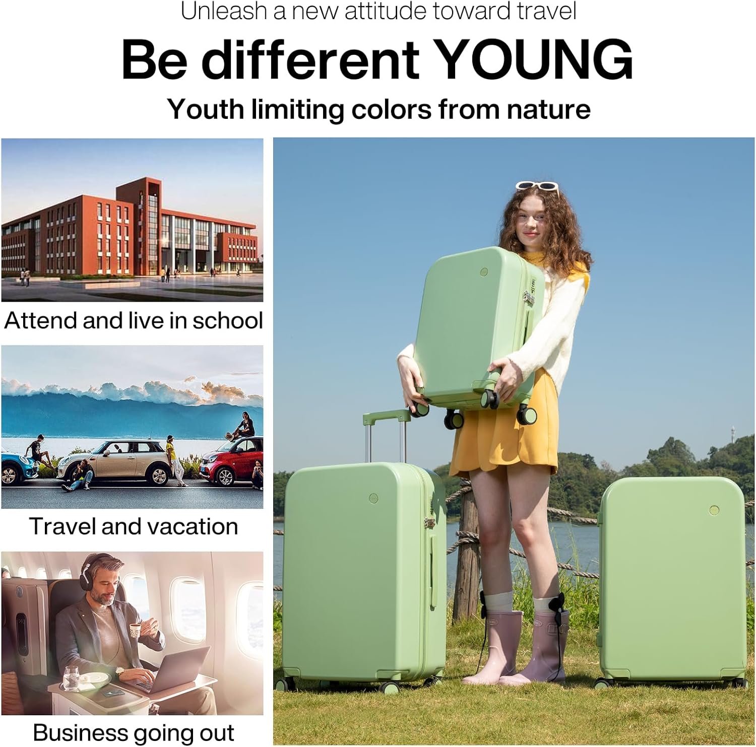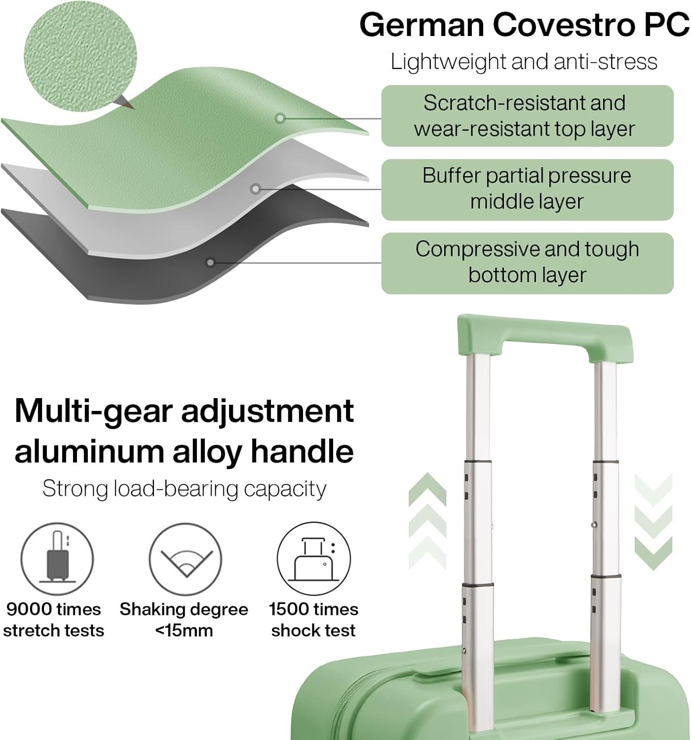 Simple & Fashionable Suitcase, Combined with THREE-LAYER Bayer PC material which is called “Soft Steel” for hardshell, which make the luggage durable, wearable and lighter than ABS or ABS+PC suitcases. The color of this series hardside rolling suitcase is fashionable and bright and available in 16in 20in 22in 24in 26in 28in, please check our size chart/description carefully before placing an order and choose the right one for the upcoming travel.