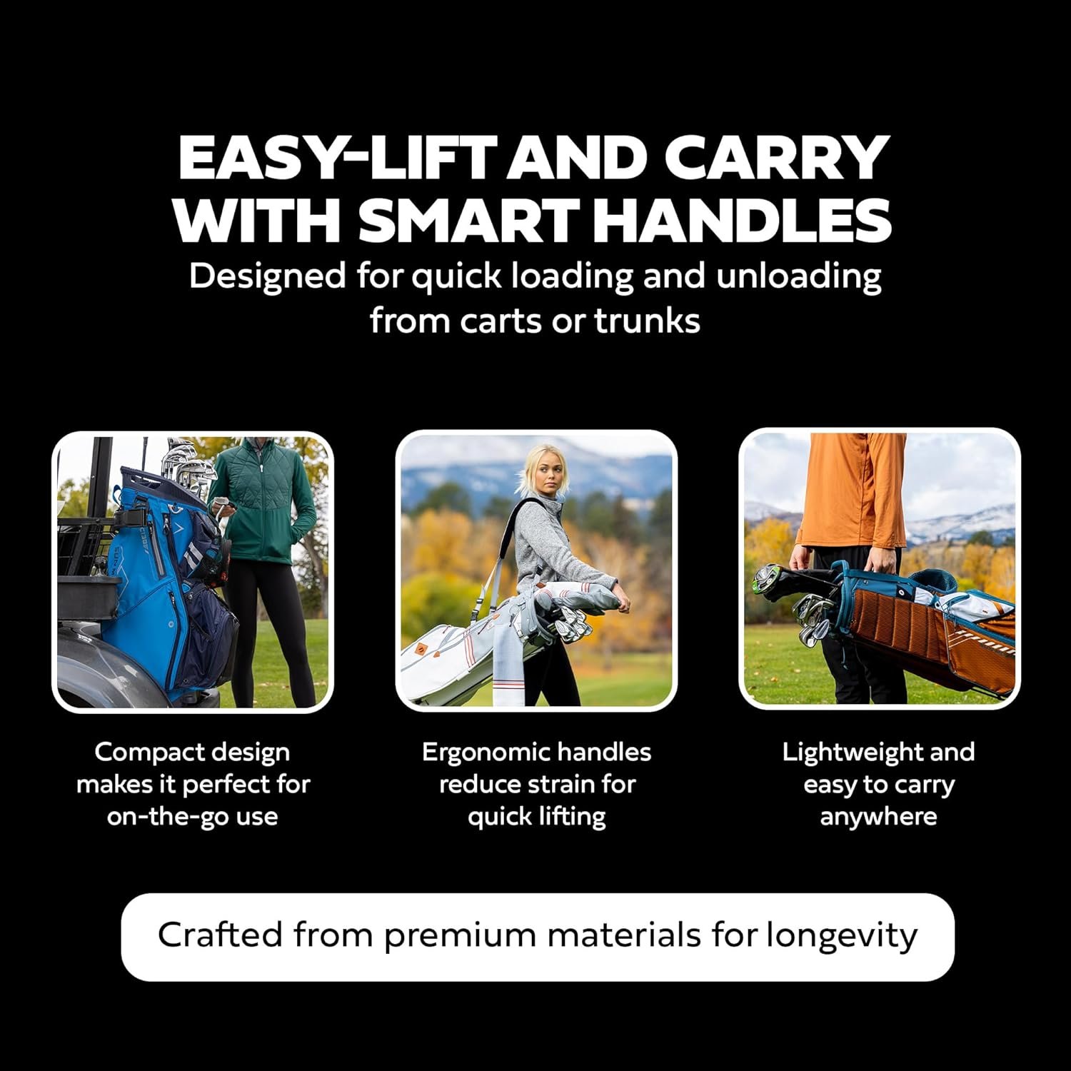 Easy-to-Carry Design: Equipped with multiple handles and a padded, adjustable shoulder strap, our C-130 golf bag for men offers versatility in carrying options. The integrated lift-assist handles make it easy to load and unload from your cart or vehicle.