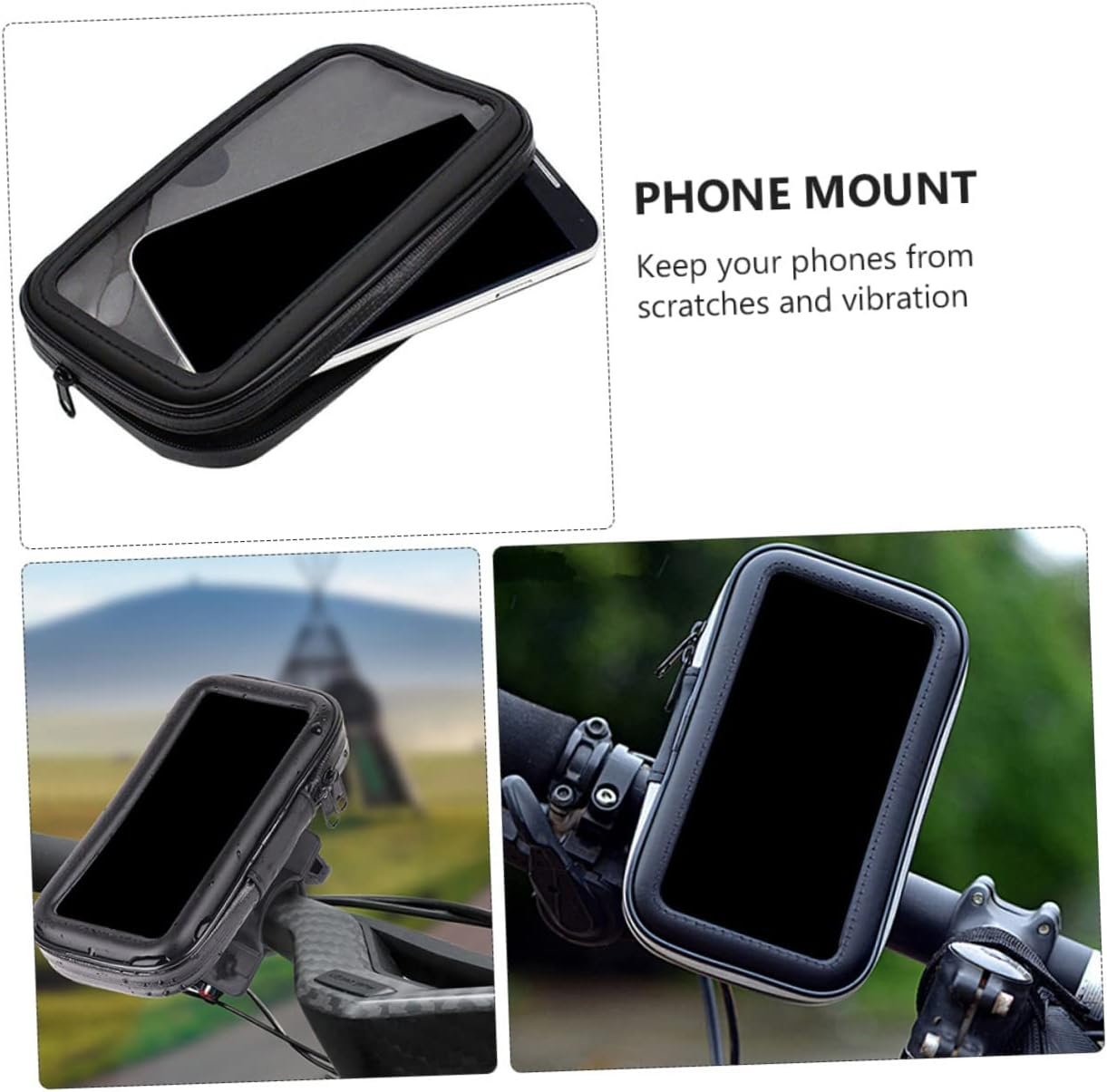 waterproof phone bag This is a bike phone mount, which is made of material, durable and can be used for a long time.phone waterproof pouch This waterproof phone mount can be used on rainy day.bike phone bag handlebar Wide application.phone protector waterproof can be used for bikes and motorcycles with handlers.waterproof case for phone The phone will not shake during the ride